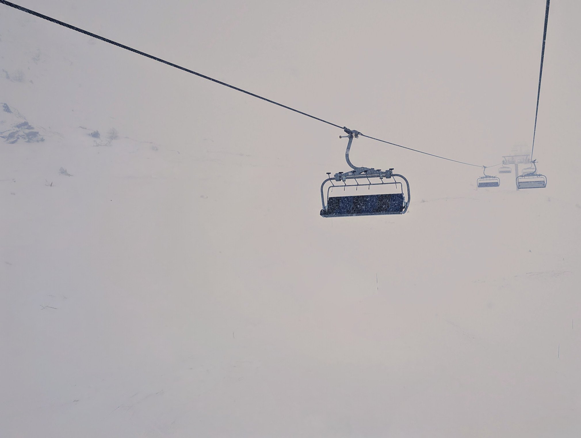 L'après midi sera un peu mieux, moins de monde, visi un peu meilleur mais ici et là faut éviter les cailloux . C'est sur les bords de pistes que la neige est meilleure, poussée par le vent.🌬️
