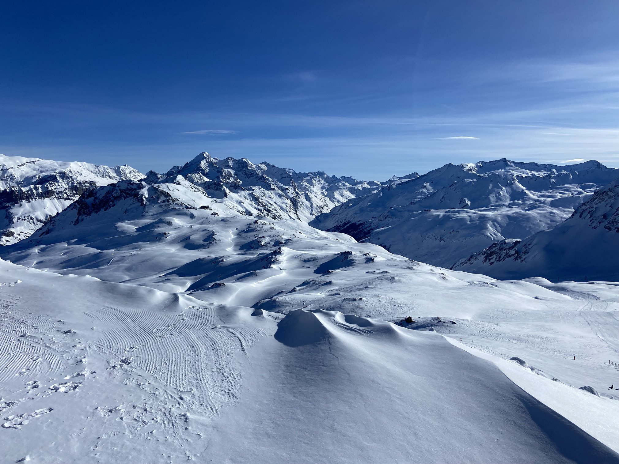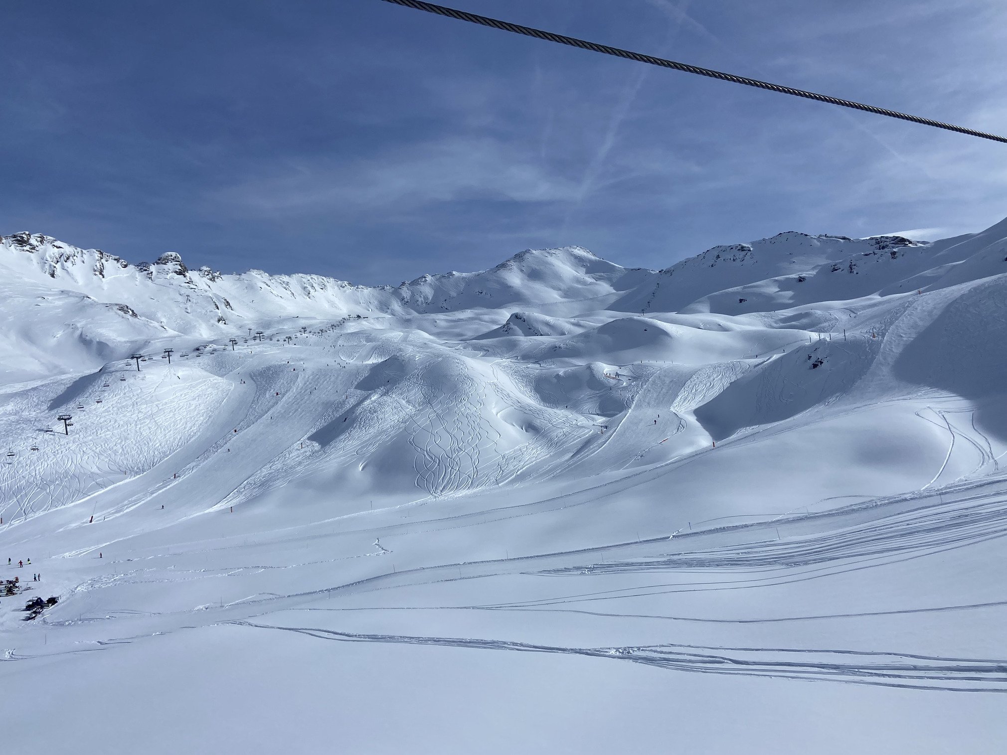 Câest dĂ©jĂ un peu brassĂ©e par le trajet en bus que je mâenfonce dans le funiculaire de Bellevarde direction le haut de la station. Mal des transports + altitude ne font pas bon mĂ©nage đ”âđ« Du coup je nâapprĂ©cie pas Ă leur juste valeur les premiĂšres pistes bleue et verte mais je crois bien que la neige Ă©tait plutĂŽt bonne. Un peu dure Ă mon goĂ»t mais bonne accroche.