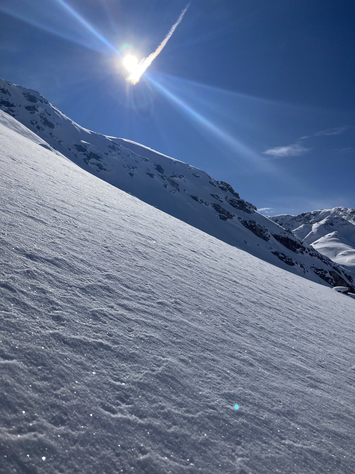 Ensuite direction l’envers de Cugaï en bonne neige 25cm sur fond compacte agréable à skier