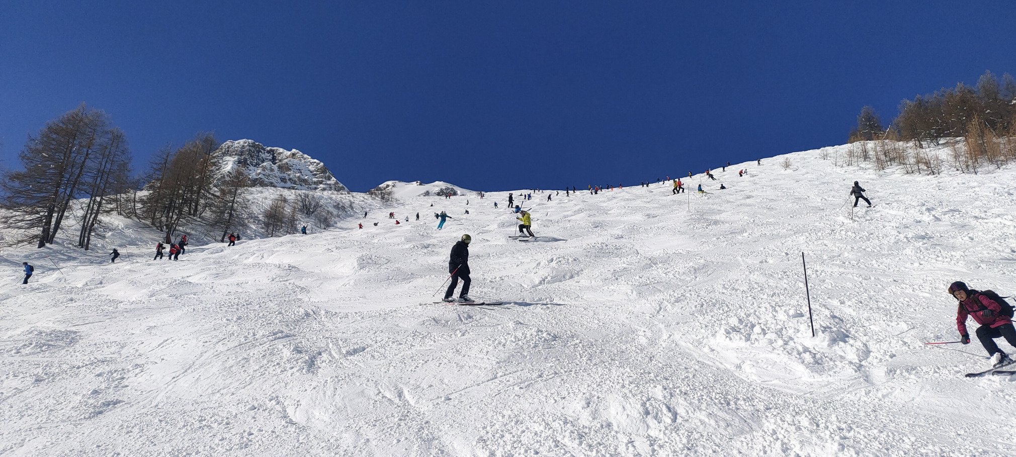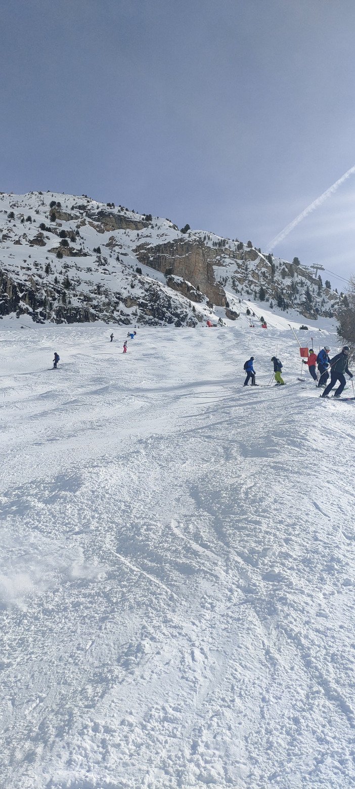 Comme Santons, certaines pistes (la rouge L notamment) ou remontées (TS Lessieres et Cugnai) étaient fermées en raison des risques d'avalanche, malgré un BERA redescendu à 3. Pour autant, il y avait de nombreuses traces sur toutes ces pentes ou secteurs plutôt exposés, datant certainement d'hier ou d'aujourd'hui. Certes, c'était hyper tentant, mais je me dis que certains sont tout de même très joueurs...