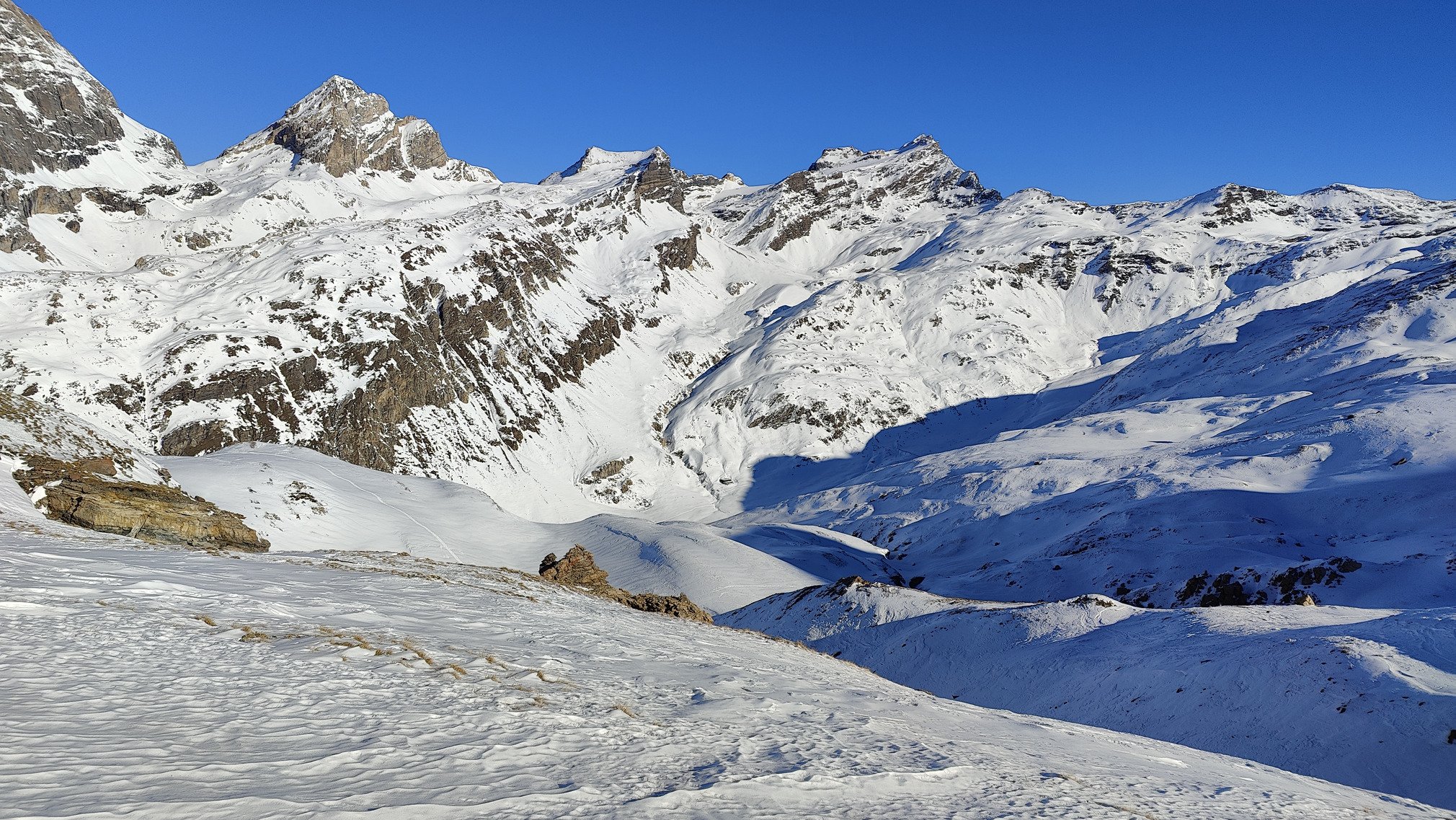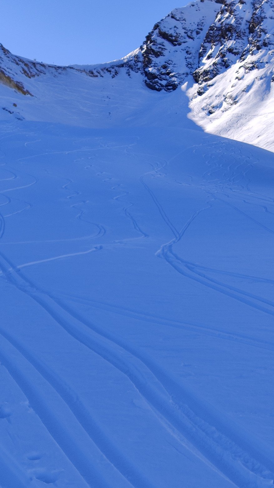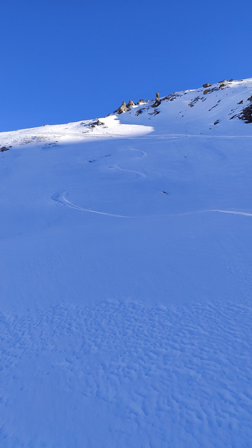 L'entrée dans col perse était rock en roll🤟 , soit a droite tu fais tout droit pendant un bon 10 m sur un grattoir affûté 🧐, soit à gauche , un petit couloir (type noir +) de la taille des skis , plombé de bosse et truffé sur les côtes, non skiable, a faire avec un jeu de dérapage avant arrière 😱 ou alors faut être sévèrement maso😳
