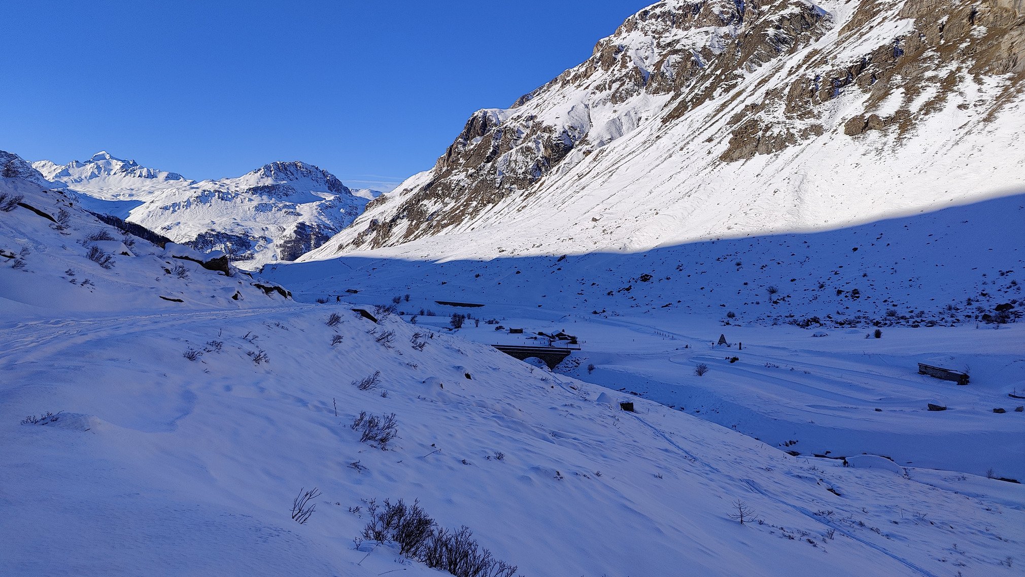 Plus on descend plus c'est changeant , dans les vallonets soit on tient au dessus, soit on trouve un petit damage des skieurs precedent, soit ça croûte soit ça poudre.... on slalome tranquille dans tout ça jusqu'au pont saint Charles😎, après la route est damé donc on rejoins facilement le fornet🙂