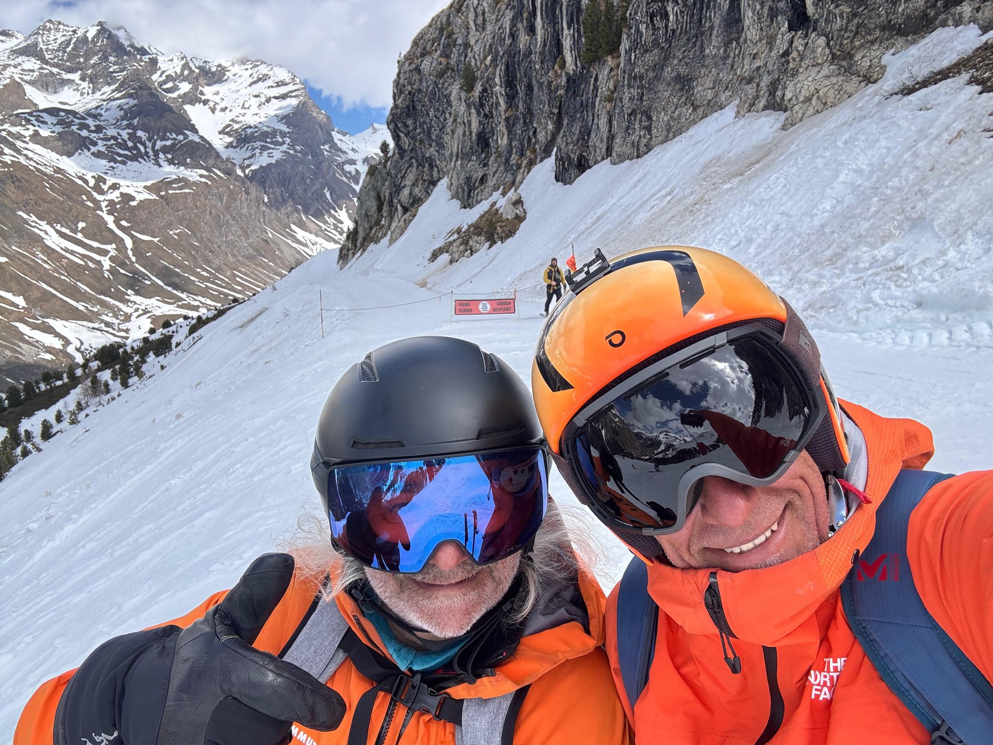 En photo la creazy orange team dans ses habits de lumière (hormis mon sac à dos avalanche qui est aussi orange et mon dva qui sont en vacances pour skier plus léger)🤟
