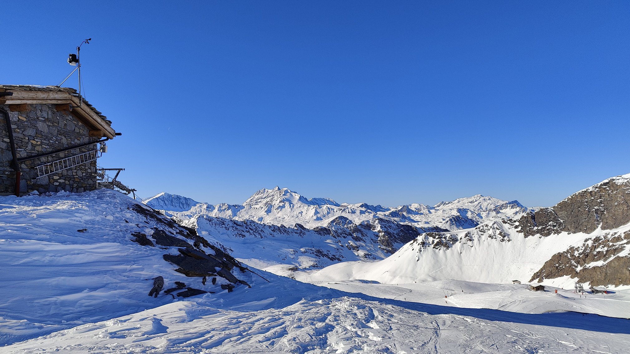 Météo : Ce 14 décembre à Val d’Isère, la journée se déroule sous un ciel limpide du matin au soir. L’atmosphère reste très lumineuse, simplement voilée par moments en altitude, sans évolution notable jusqu’en soirée. Pas de précipitations au programme. Consultez la météo de Val d'Isère pour le bulletin complet.