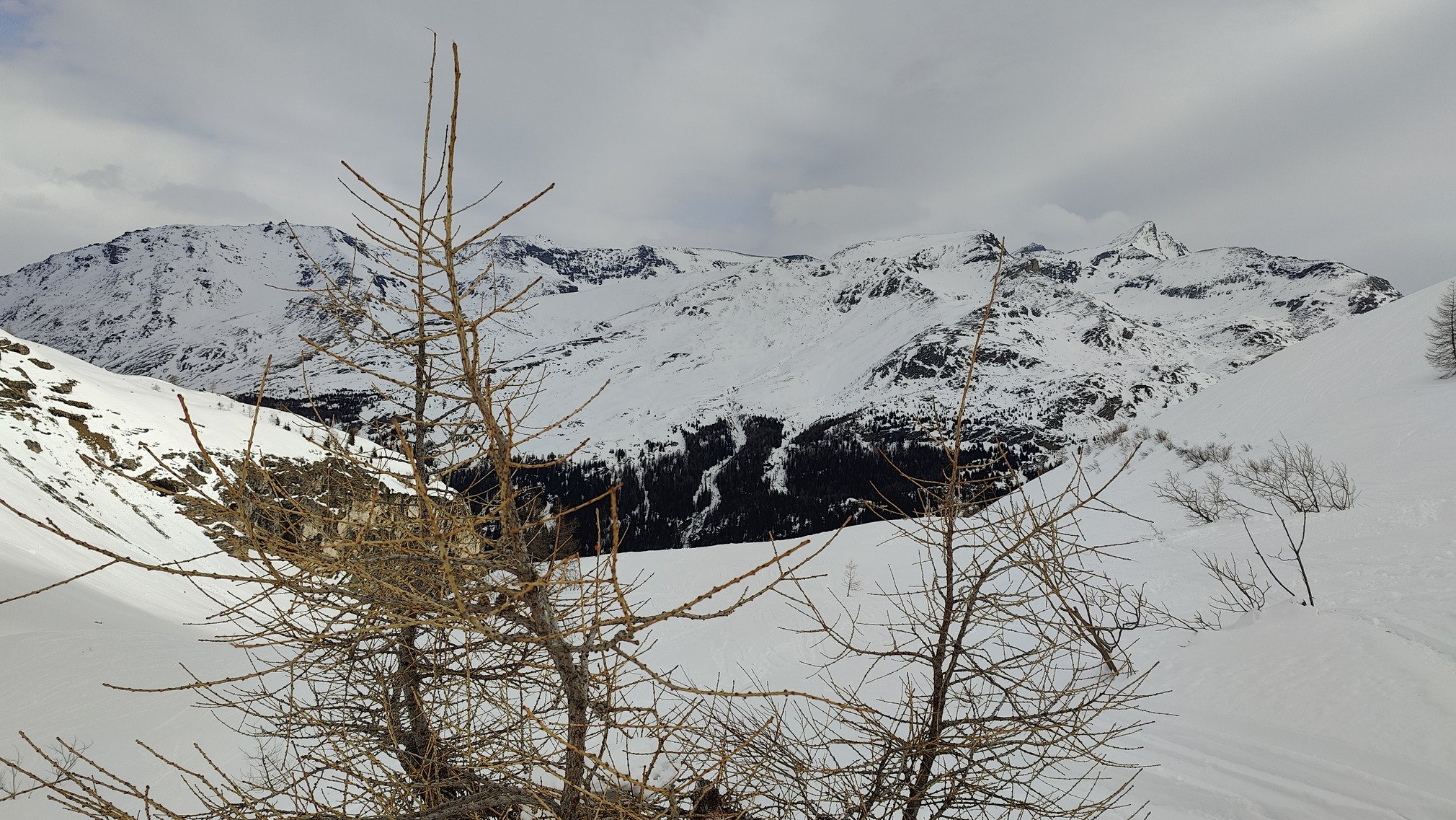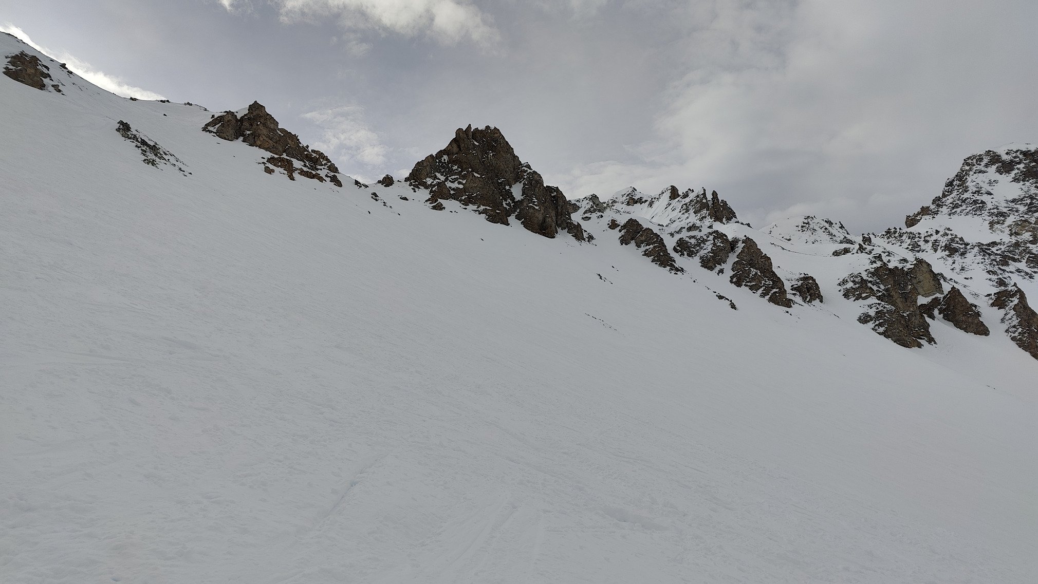 Pour ce faire on s'Ă©chauffe sur un envers du Borsat, une belle pente raide avec une neige qui accroche a merveille sans faux plie đ
