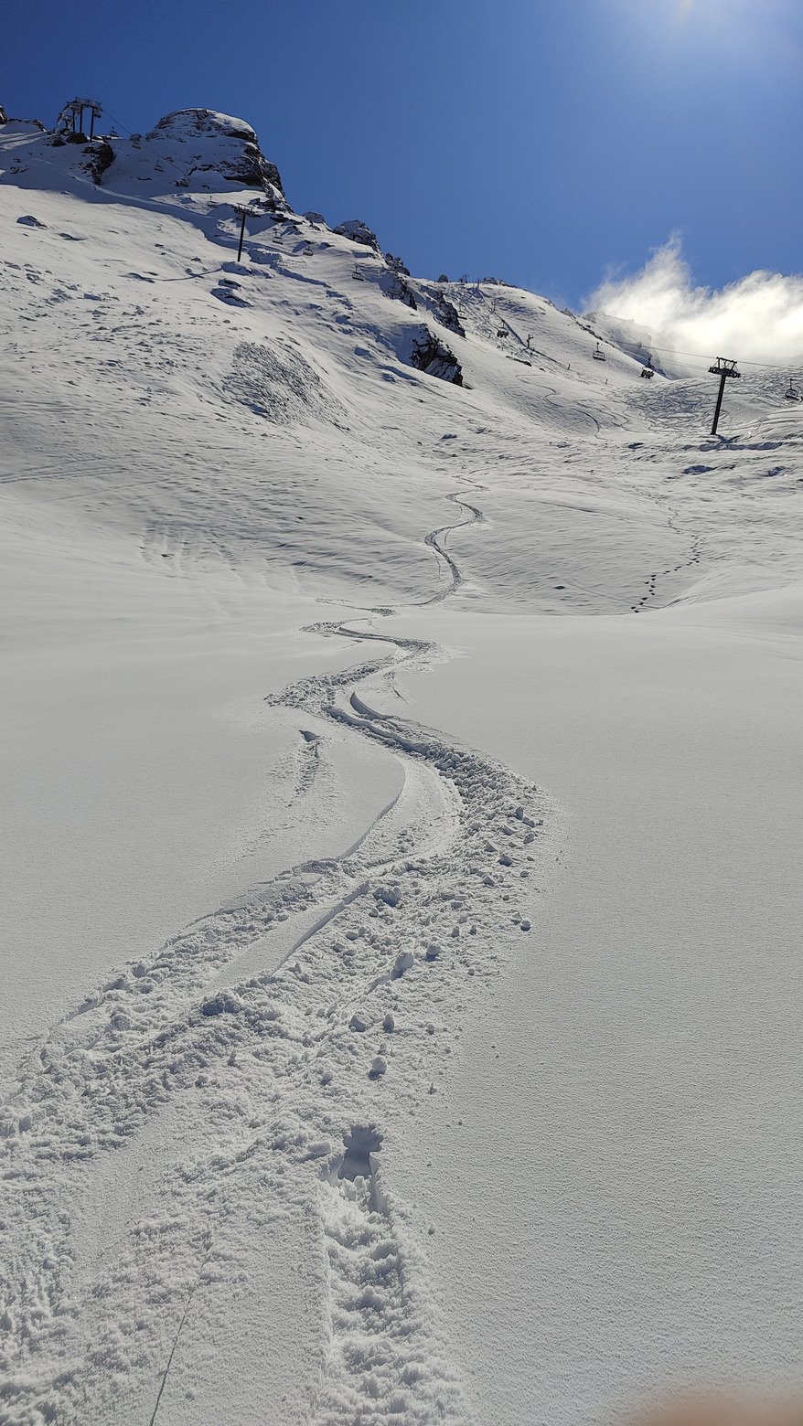 Un peu vanné par toutes ces courbes en pow, je pensais en prenant le siège du col de Lessiere en avoir fini avec la poudre 🫡