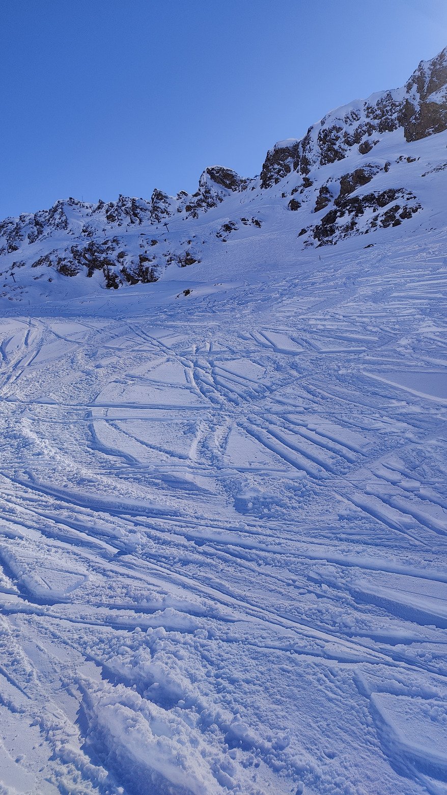 Il est 16h j'arrive en haut du télécabine du fornet🫡 mais vu l'état de la piste juste au dessus, un vrai champs de mines avec bosses et lustrage 😱