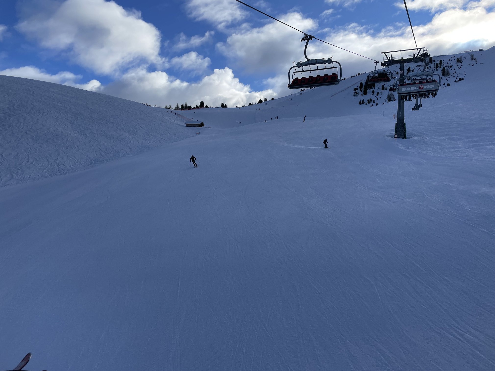 Même pas testé les bords de piste… Le soleil disparaît dans la matinée pour laisser la place à quelques nuages, qui persisteront toute la journée et permettront peut-être de limiter la fonte..