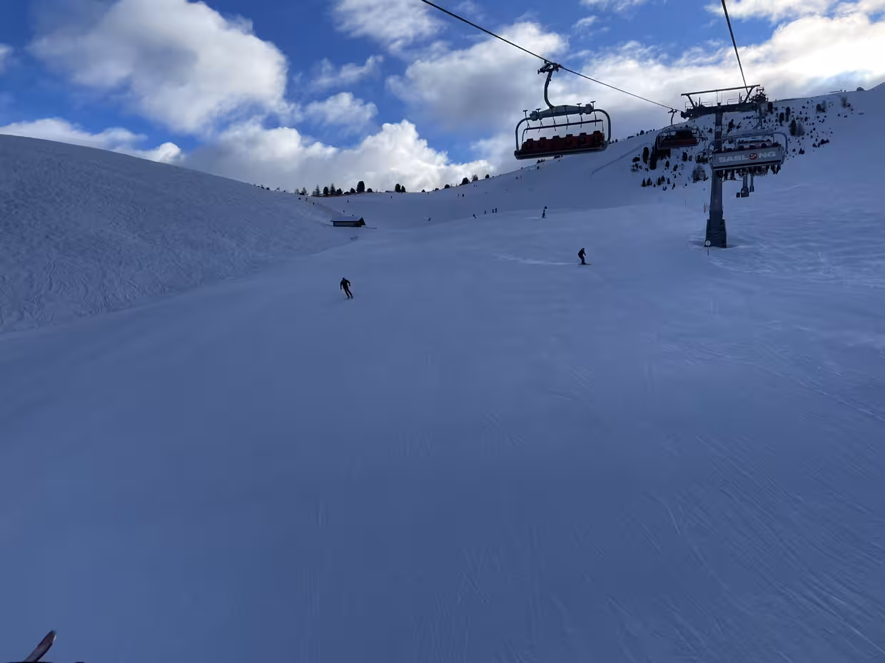 Ce matin, à 8h30, il ne gelait même pas… les pistes exposées nord étaient bonnes jusque vers 11h, puis ensuite toutes, et particulièrement celles au Sud , étaient gorgées de flotte, avec impression de freinage. Pas de caillou, pas d’herbe mais les pistes transforment assez vite.