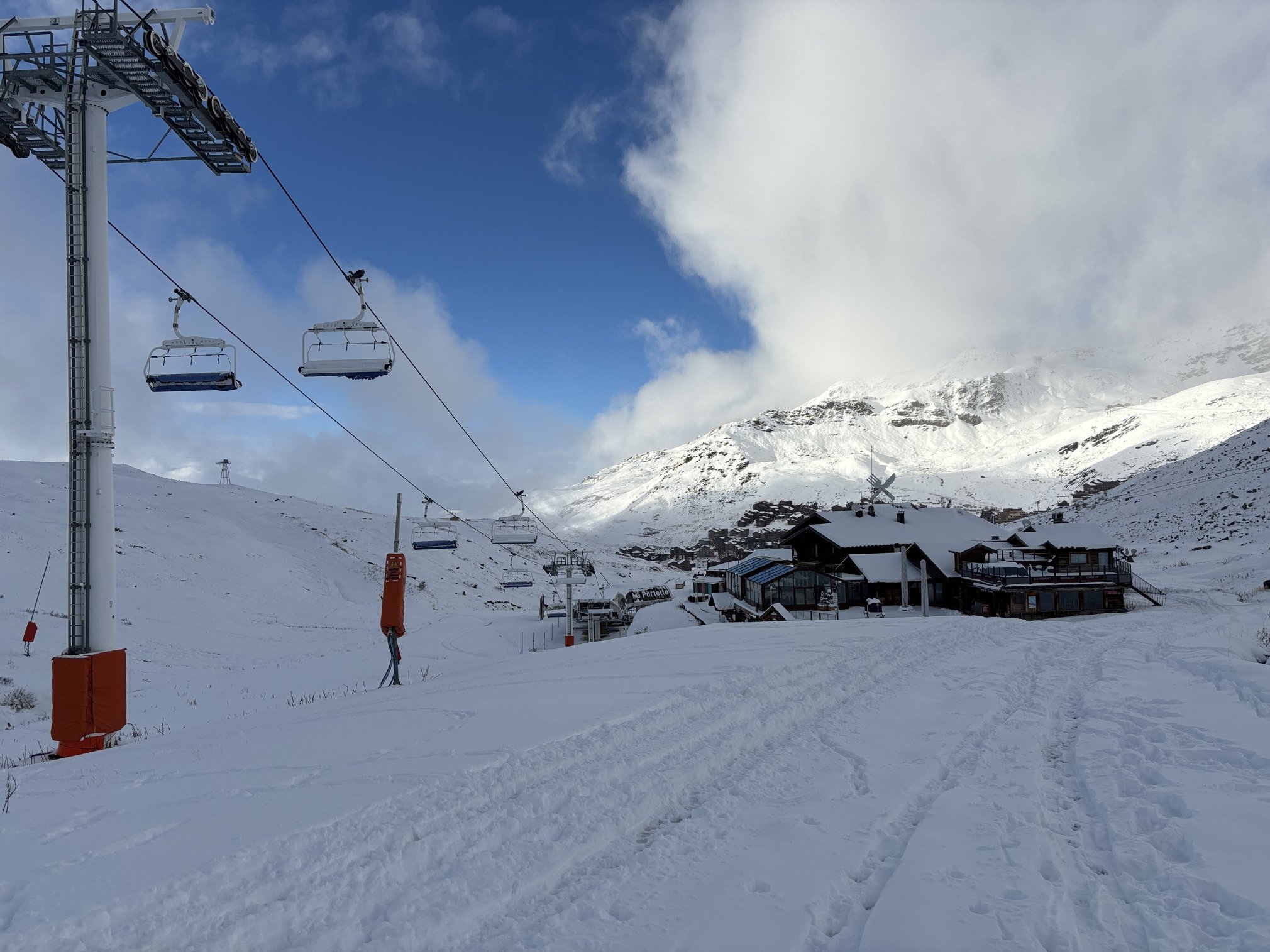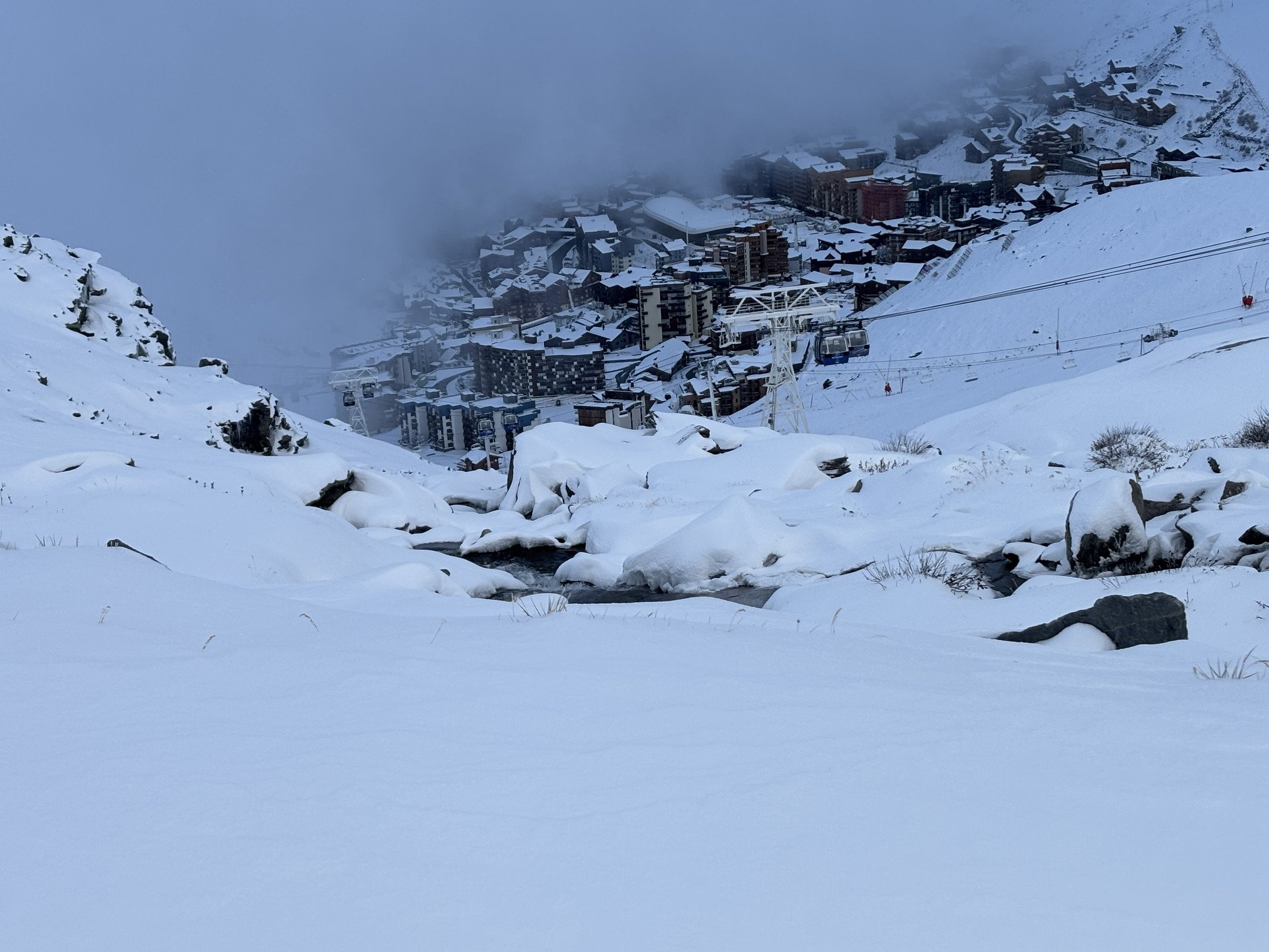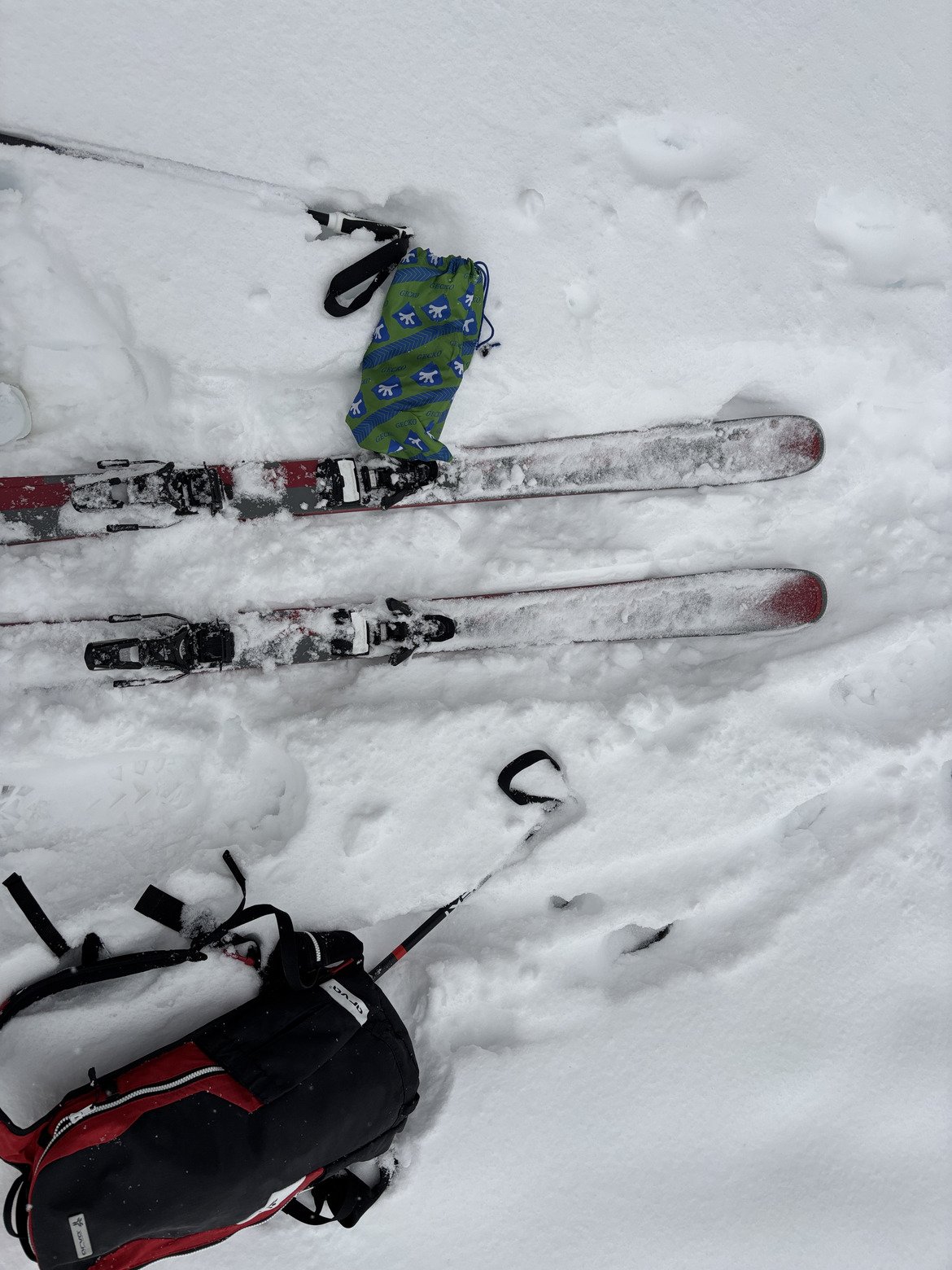 A peine rendu je dépoussière mes Dynafit, je retrouve les Geckos qui collent encore un peu, m’empare des Kästle FX86, je glisse depuis mon immeuble jusqu’à la piste où je galère à shifter mes fixations et fixer les peaux bref, me voilà parti sous un vivifiant grésil vers la combe de Thorens puis les Cascades.