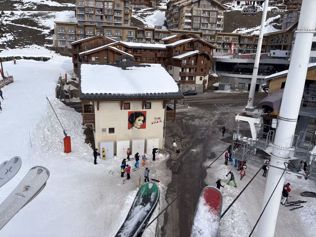 Je fais une descente et je remonte et là elle tourne, je peux rentrer sur Val Thorens mais je commets l’erreur de descentre par « Mont de La Chambre »: un monde de fou à Plein Sud, 🚡 Deux Lacs comme d’habitude fermée dès que ça 💨 mais curieusement peu de monde à Moutière, je crois au bon plan sauf qu’un filet barre l’accès au virage de Caron!