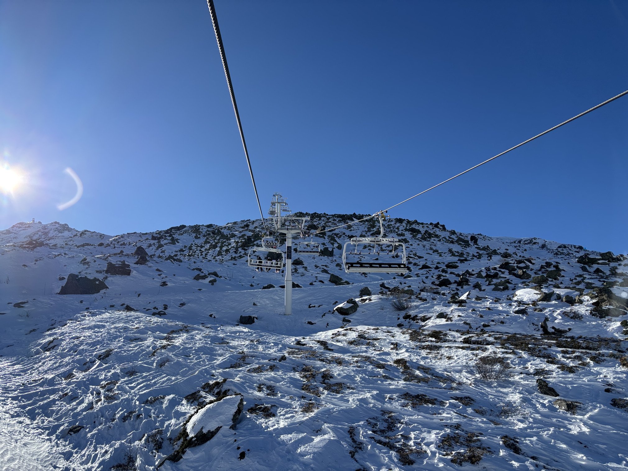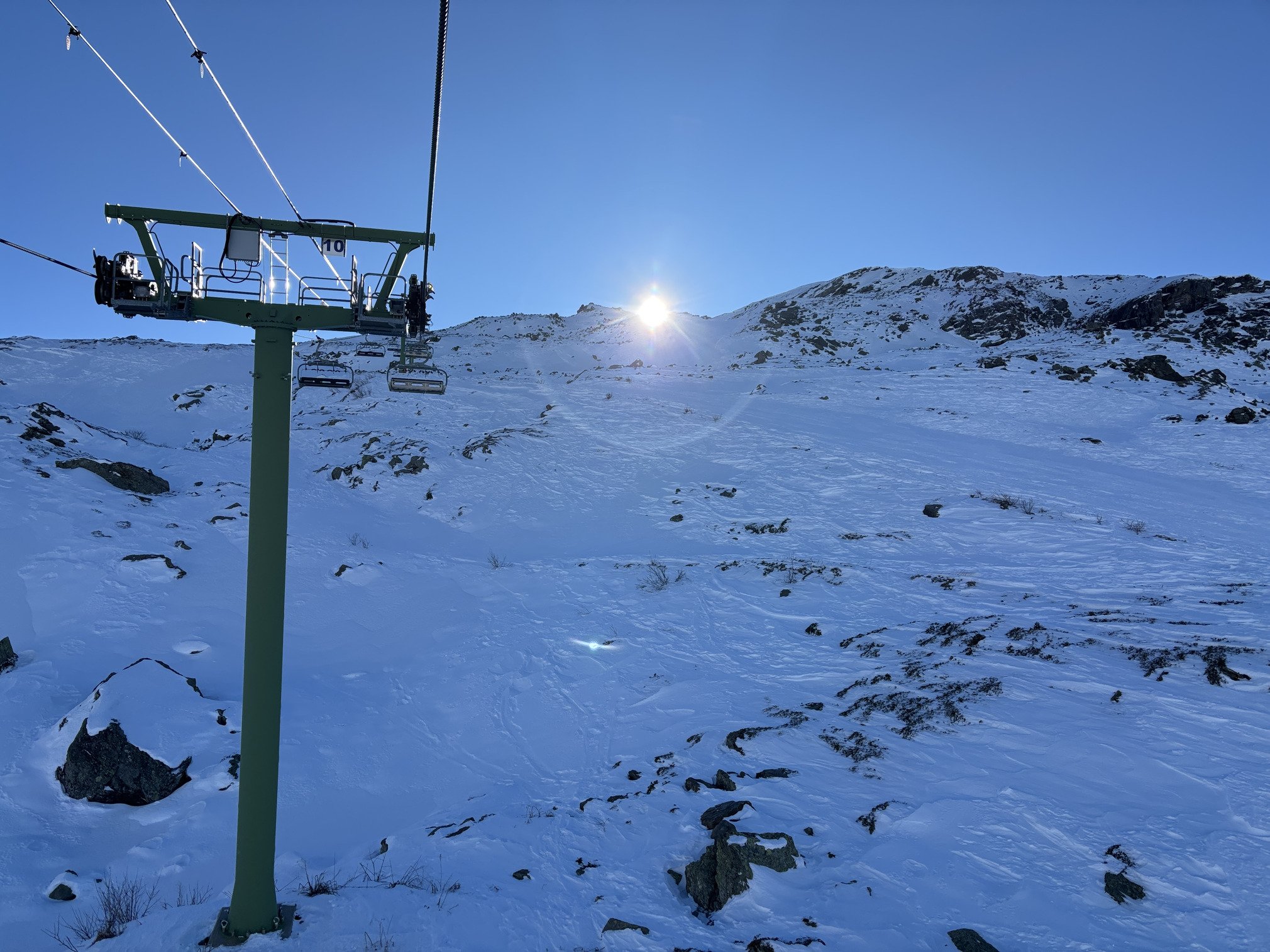 Je démarre avec la 🚡 Deux Lacs, qui faute de vent marche enfin et tourne surtout à son plein régime: à 7m/s, elle avale en un clin d’œil les foules.