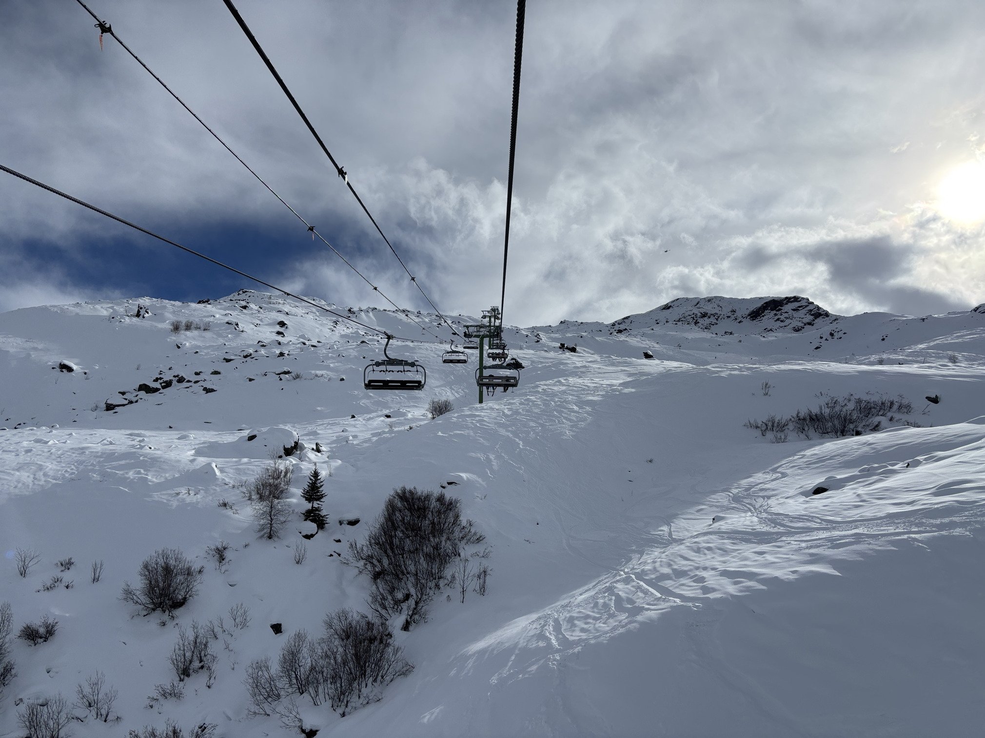 Donc câest le retour en dĂ©but dâaprĂšs midi sur Val Thorens oĂč le froid se fait sentir, la neige est aĂ©rienne et sĂšche, nettement moins touchĂ©e par le âïž et le redoux.