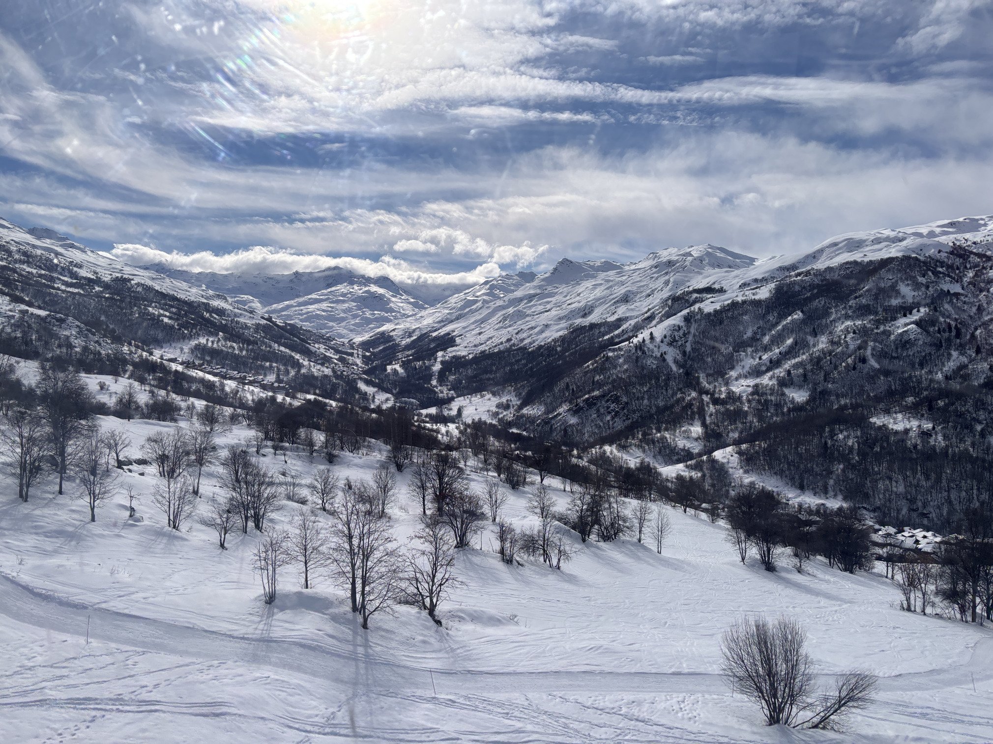 La hauteur de lâisotherme me fait changer mes plans, pas de forĂȘt, je reste sur la crĂȘte limitrophe Allues/Belleville: les Menuires, Saint Martin, TougnĂšte 2, Mottaret dont VallonâŠcâest bon au dessus de 1800 m, trĂšs correct jusquâĂ 1600 m mais en dessous ça a pris la đ§ïž.