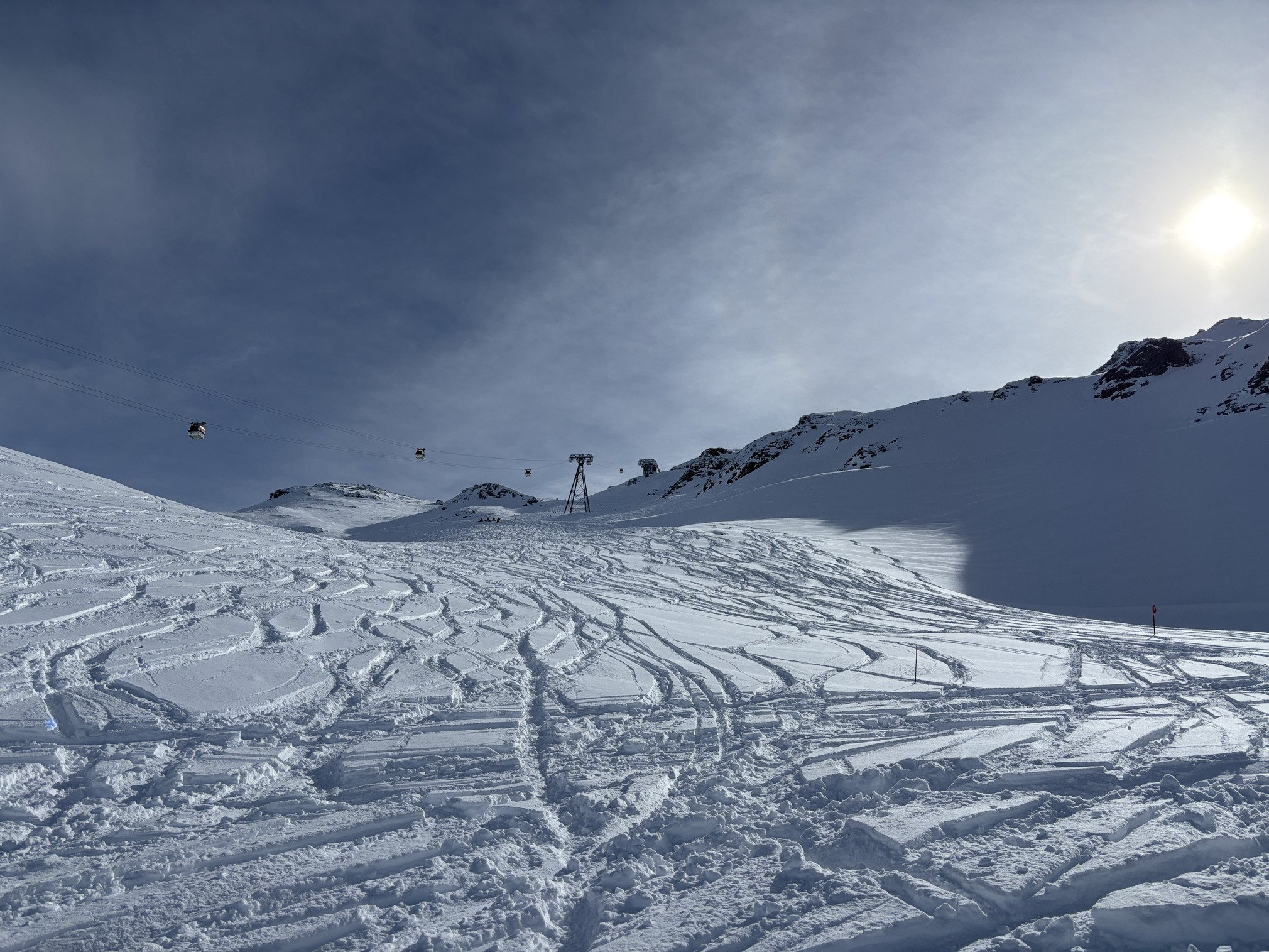 Le peu de pistes damées creuse trÚs vite tellement il y en a, ça trace les bords vitesse grand V, les rouges ont été laissées vierges, un carnage!
