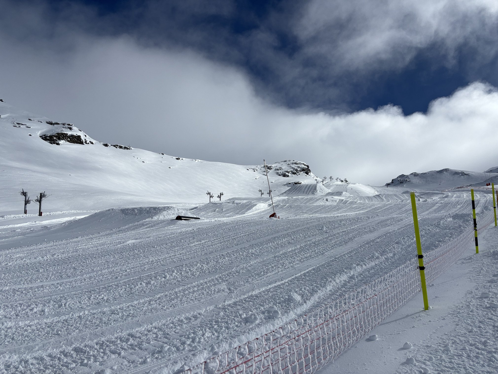 Les remontĂ©es des crĂȘtes sont fermĂ©es, on skie donc en bas et au milieu sur Moraine et Portette quelques pistes damĂ©es vite lustrĂ©es et glissantes, dâautres sont en fraĂźche dense un peu lourde.