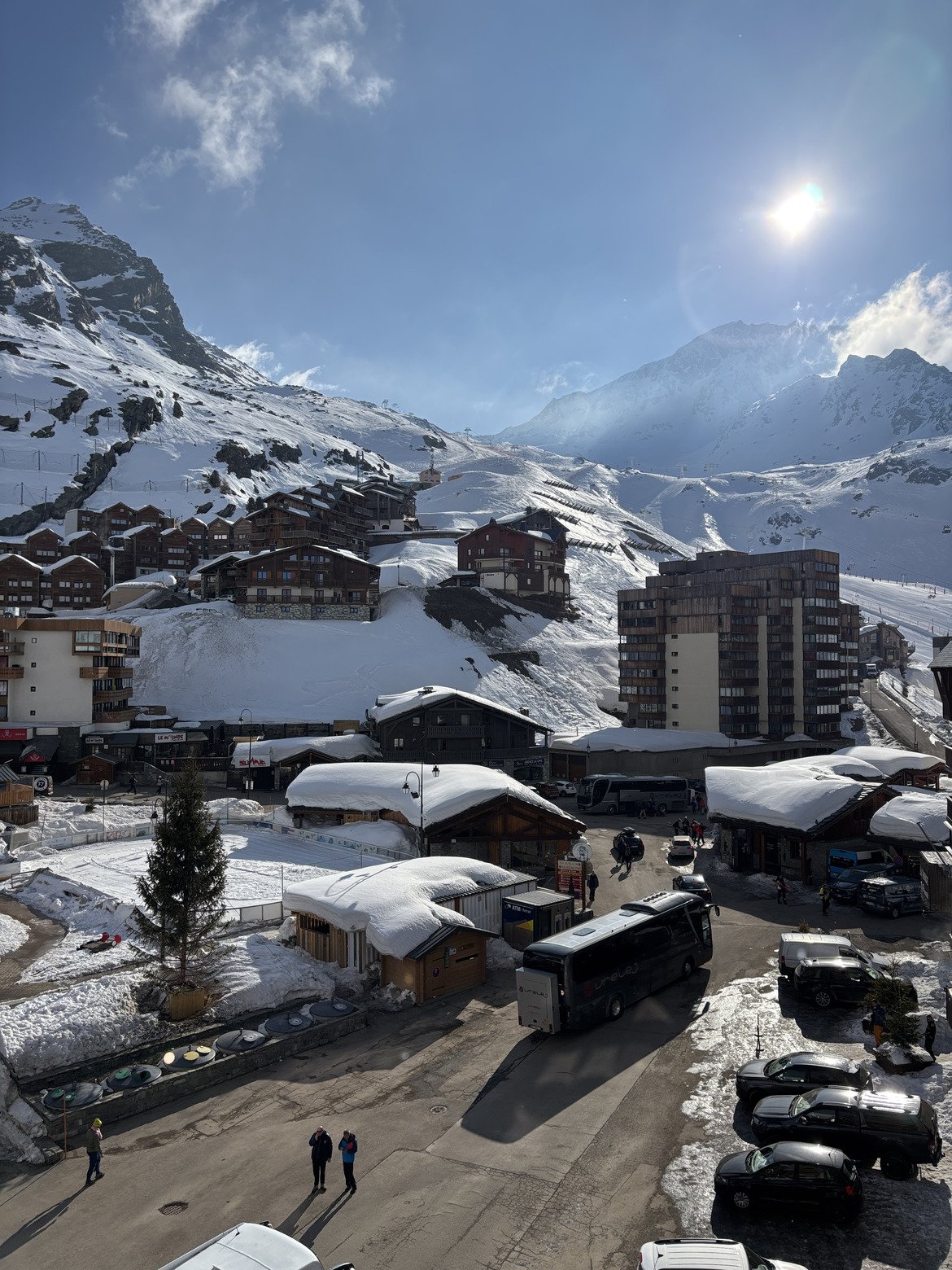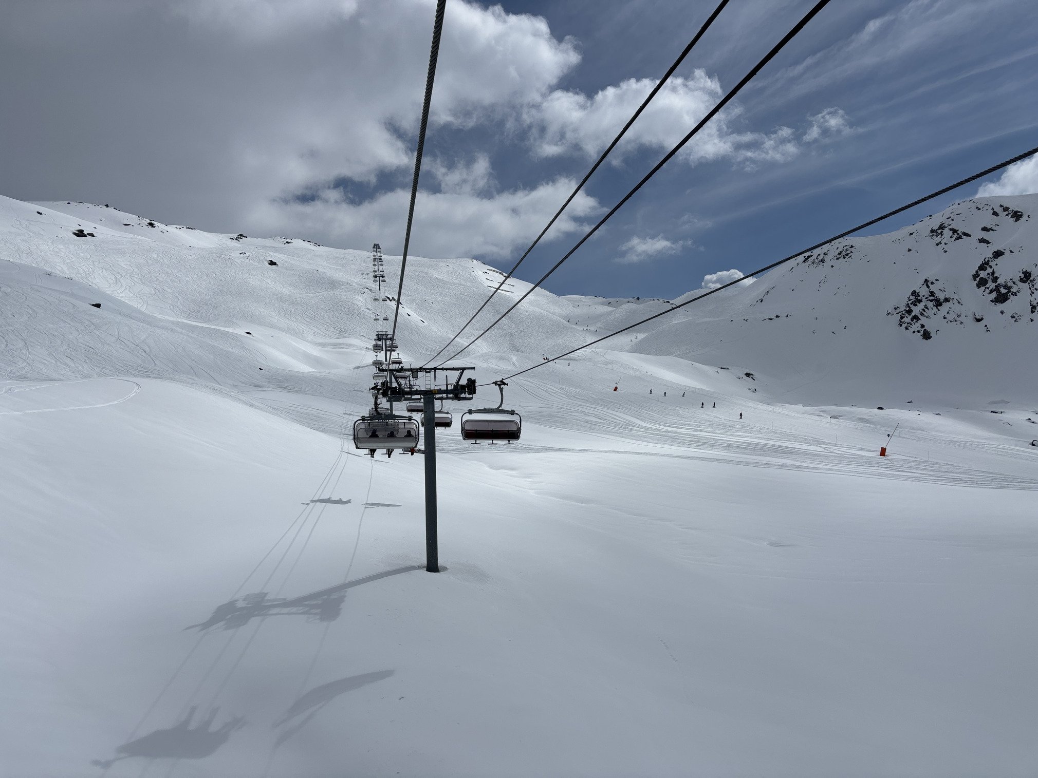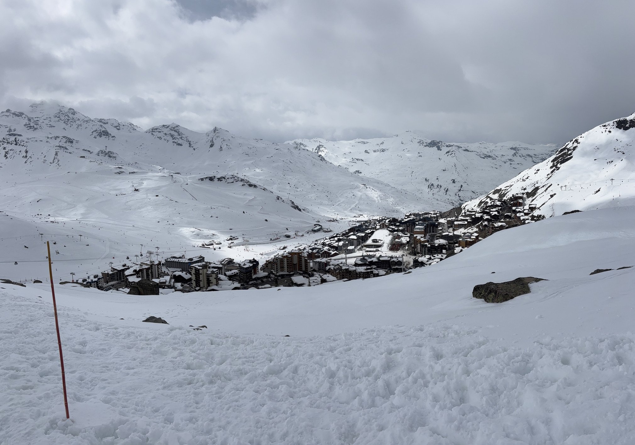 Hélas traînent des nuages qui accrochent les sommets, pas d’Orelle ni de Cime Caron mais Boismint très bon sur pistes👍🏻