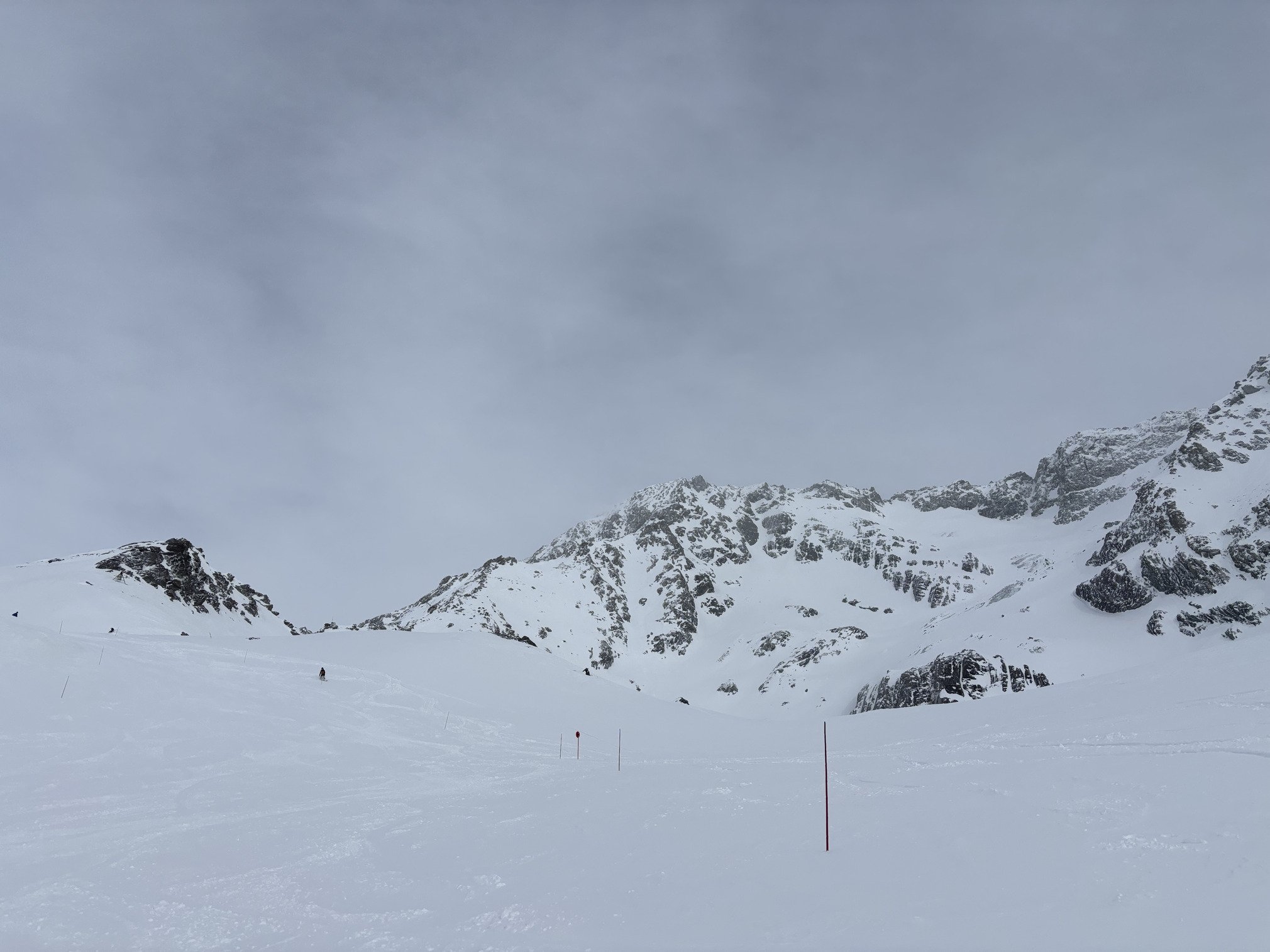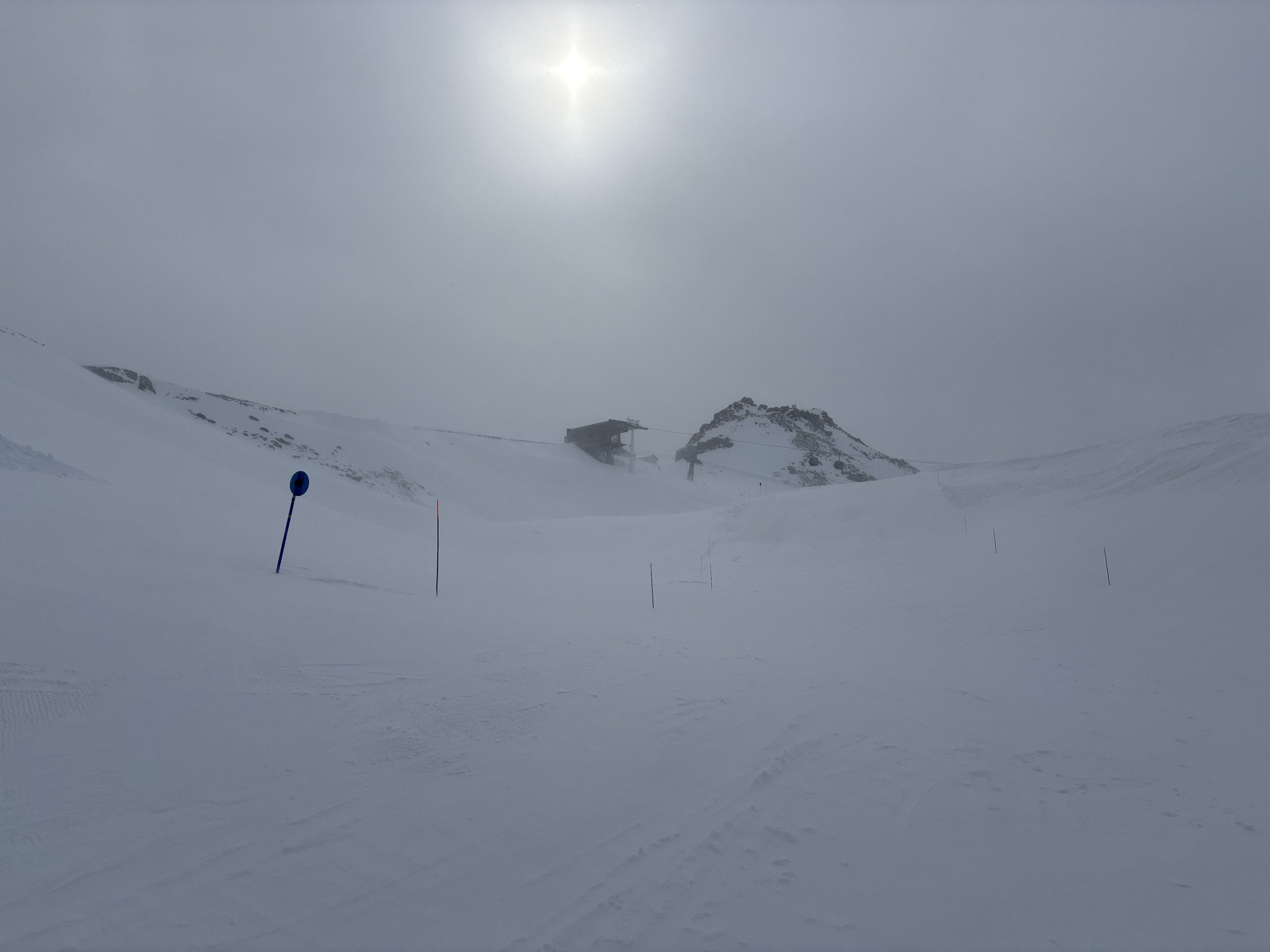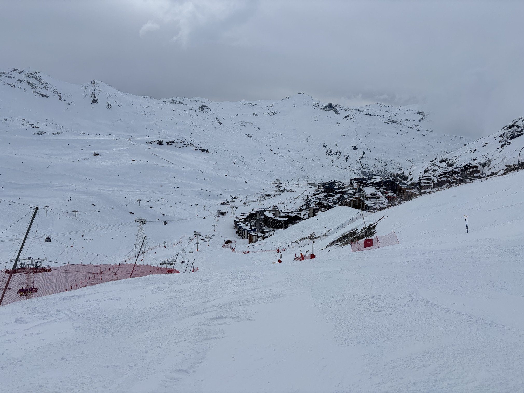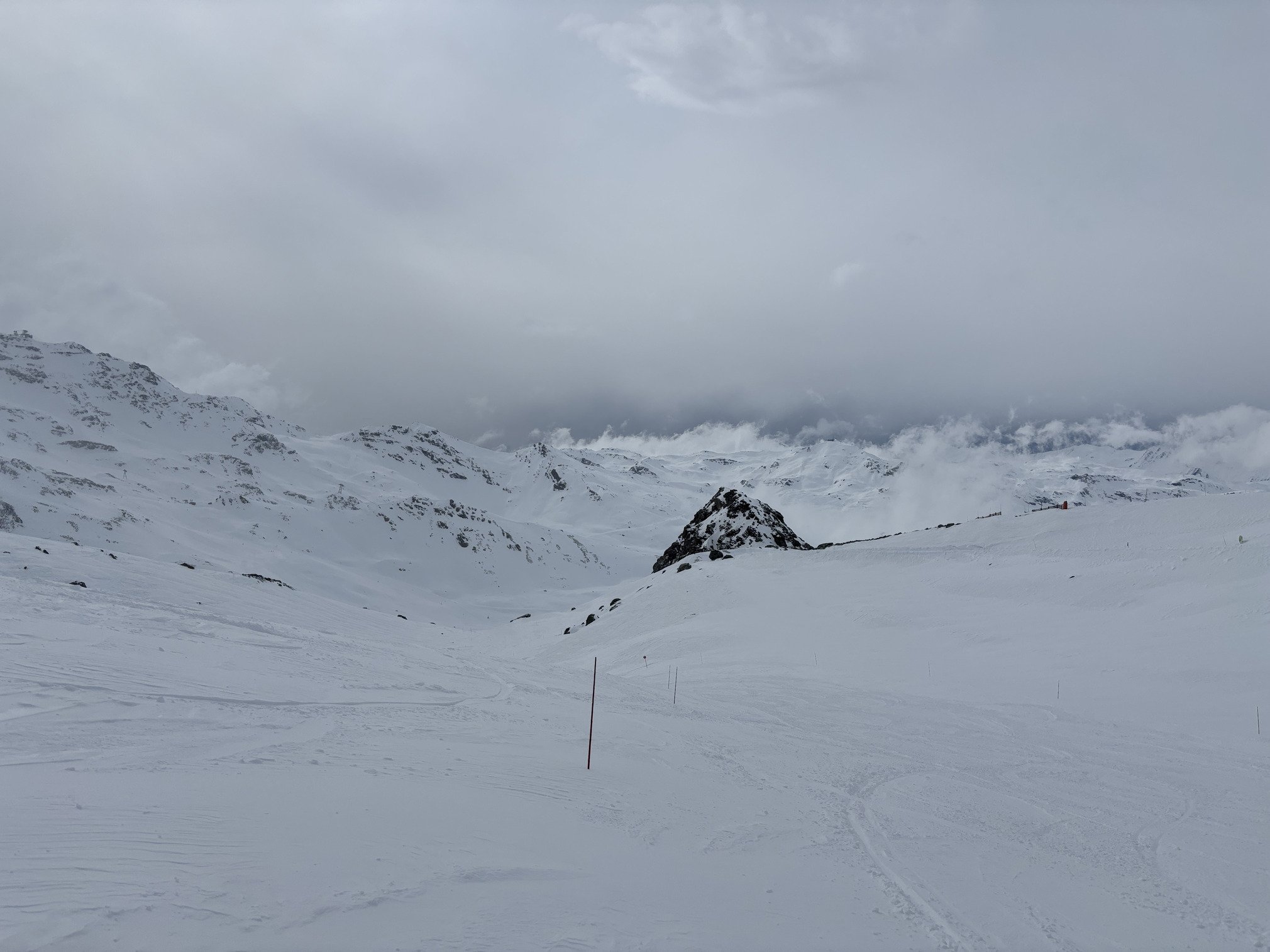Fond très dur agrémenté de petits paquets de fraîche pulvérulente sur piste, rides ou lentilles de neige matée plus ou moins grandes selon que la zone est abritée, skiabilité sympa mais aléatoire😂