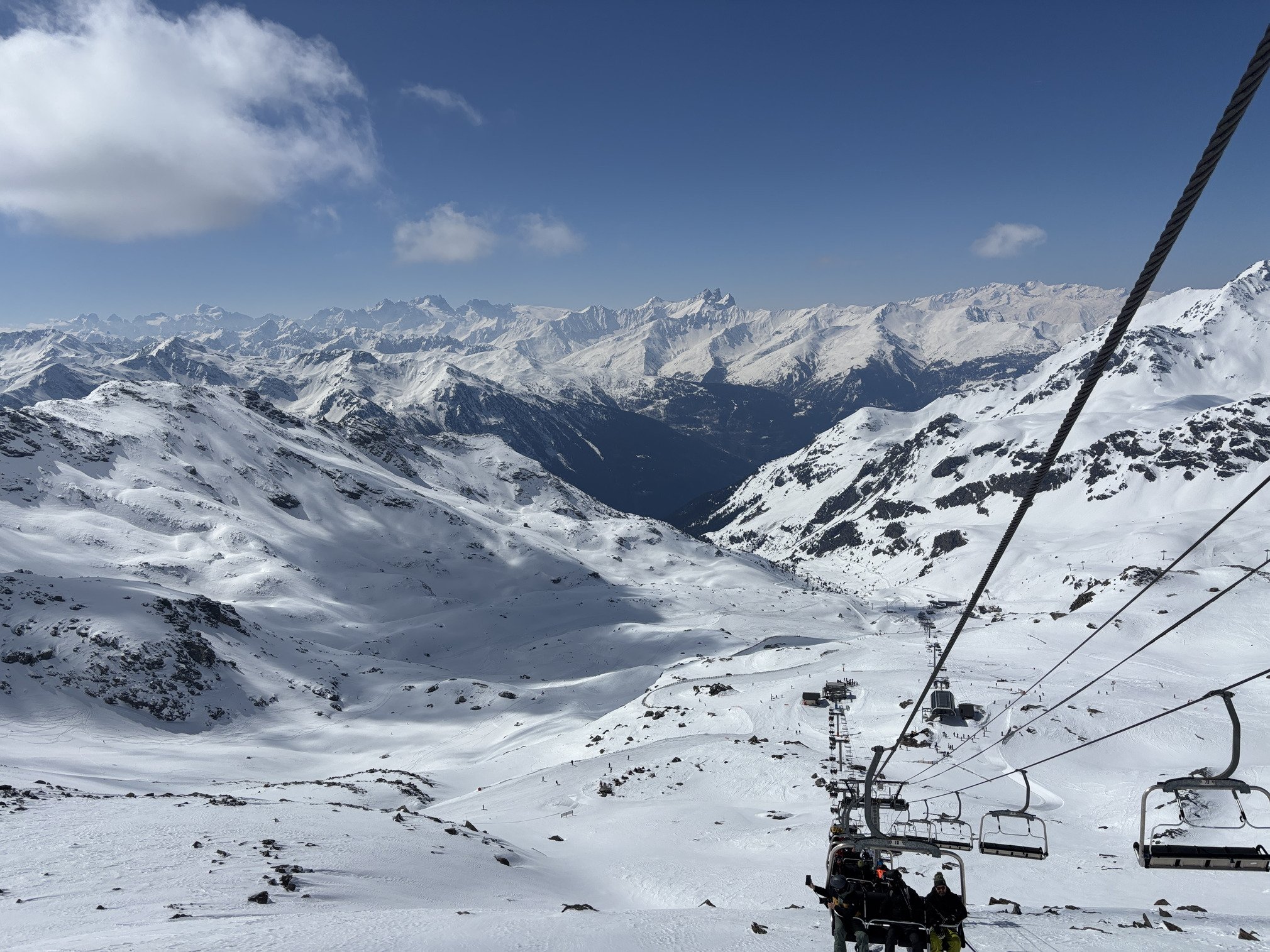 Front de neigé blindé à 10h au démarrage mais plus grand monde dès qu’on en sort, plus rien à voir avec il y a 2 semaines, c’est bien le meilleur moment de la saison pour profiter de Val Th’Orelle🌷