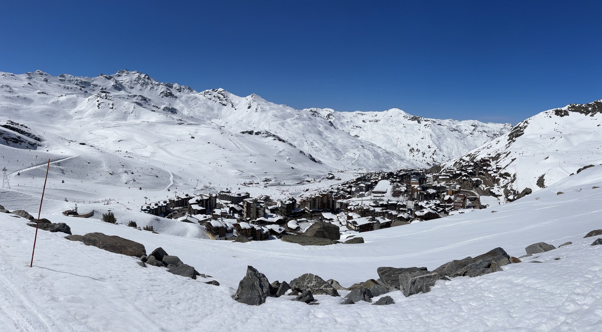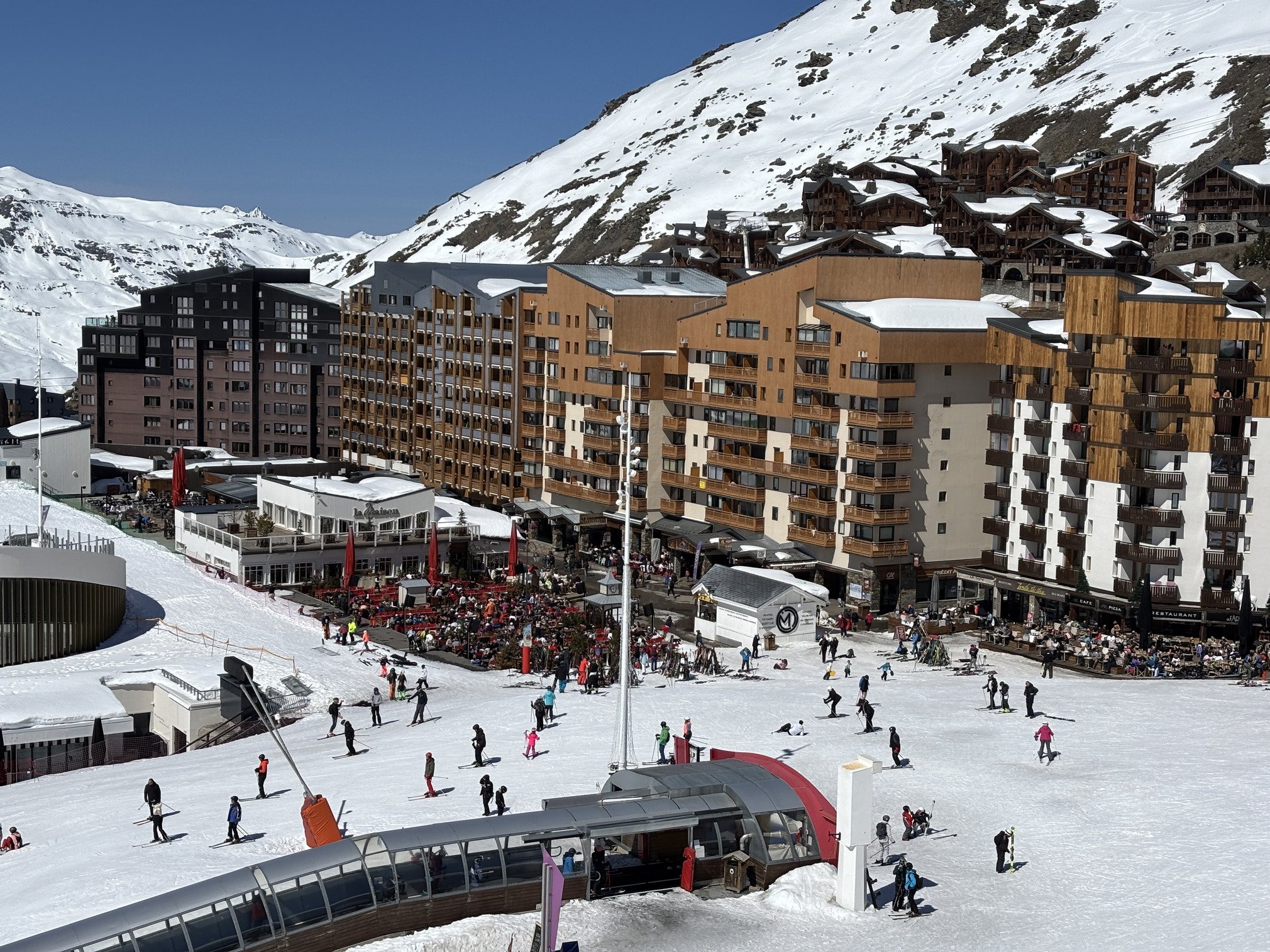 Ce sera pour très bientôt mais en attendant ça skie encore à Val Thorens, Boismint au décaillage est bon jusqu’au bas, cependant il faut ces temps-ci opter pour l’altitude et l’orientation nord vers les combes de Thorens et Caron: Face Nord, Grand-Fond, Portette, Thorens et bien sûr Caron sont clairement les installations à privilégier.