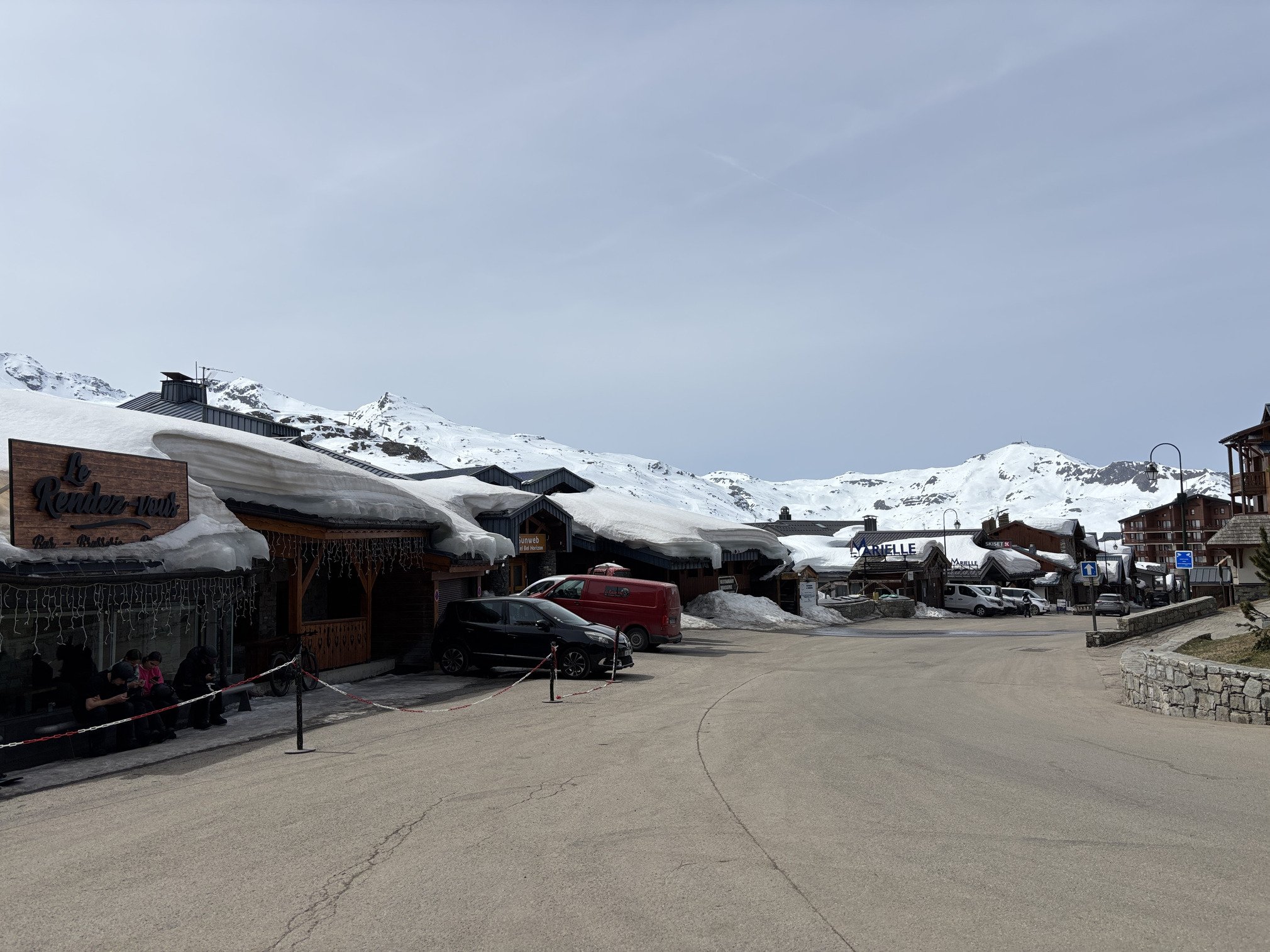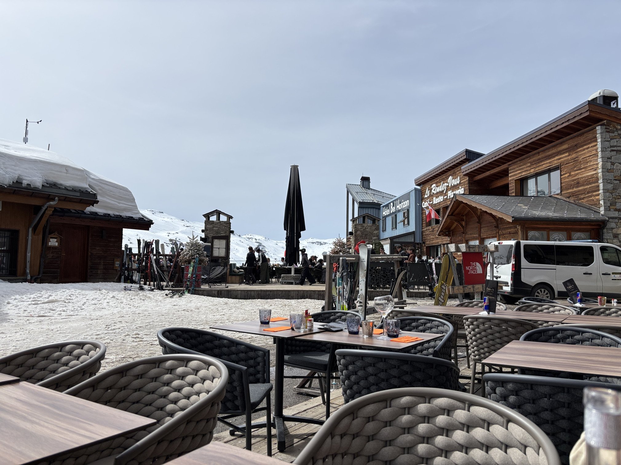 Retour à la base pour 13h pour déjeuner en terrasse au Chamois, d’où on peut voir la double tyrolienne fonctionner à plein régime et arriver les barquettes: une seule, envoyée pour deux doigts foulés, avec transfert en ambulance 🤦🏻♂️