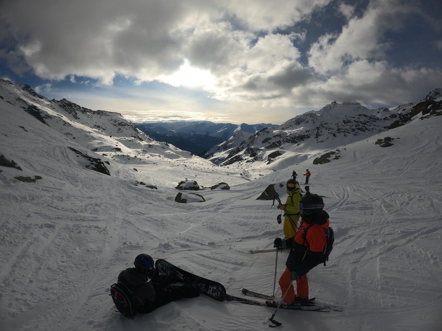 Côté temps, quelques passages nuageux sans conséquence côté ValTho. Pas mal de vent aussi sur les hauteurs mais sans conséquence. Orelle semblait, lui, bien pris toute la journée ... faut la derniere heure pour nos dernières descentes sous le soleil.