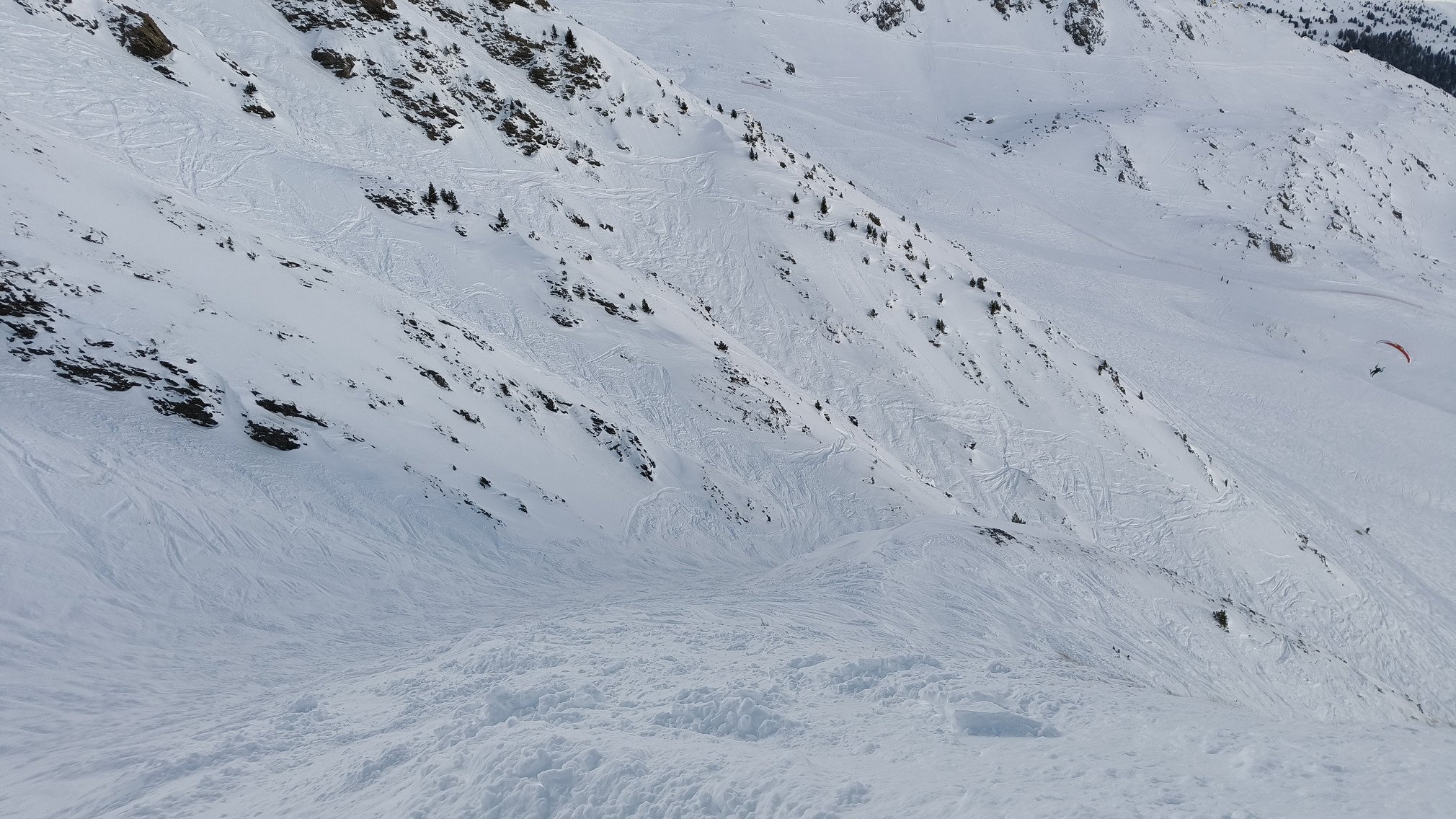 Côté neige, rien à redire : les conditions sont bien là. Les couloirs de Punta Bagna passent très bien, tout comme la Banane, avec une neige encore bien en place et quelques poches à aller chercher. Journée bien exploitée également par les speed riders, profitant à fond des fenêtres météo et du vent du jour, nous assistons à pas mal de run impressionants.
