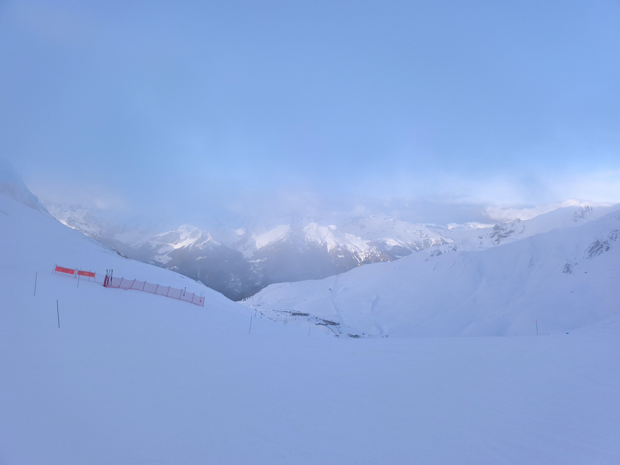 - Les températures sont de saison (autour de -8 degrés sur le haut du domaine l'après-midi) ce qui permet de maintenir la neige froide. Vent d'Est/Sud-Est faible avec quelques nuages qui viennent voiler le soleil puis plonger les pistes de l'Envers Col dans la nébulosité en fin d'après-midi.