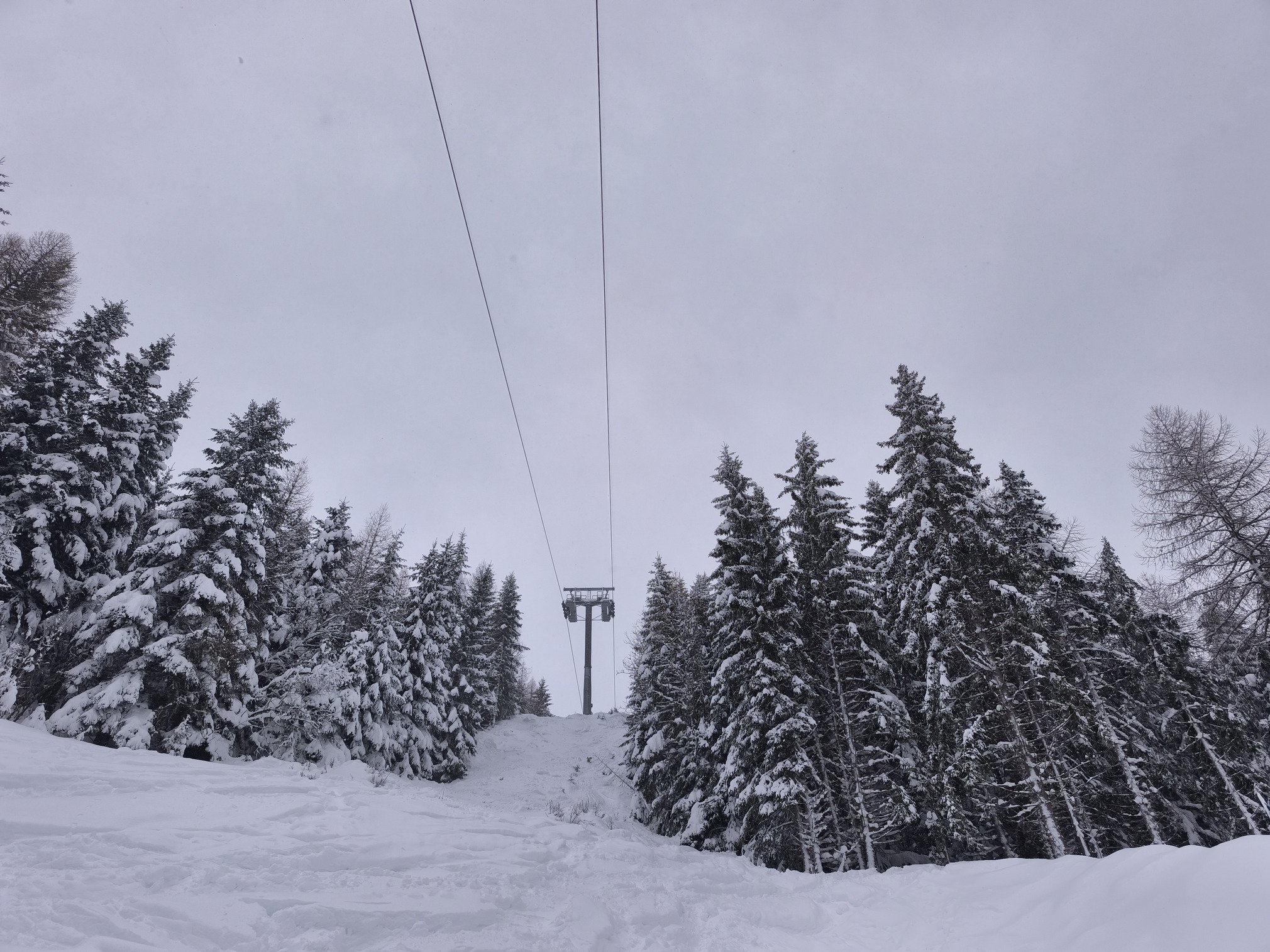 Ce mauvais temps a conduit à une ouverture très limitée des remontées mécaniques : ce matin seuls la télécabine d'Arrondaz et le téléski des Pigniers fonctionnent pour desservir les pistes du bas du domaine + le télésiège de Charmasson situé à l'entrée de Valfréjus qui culmine à 1712 mètres.