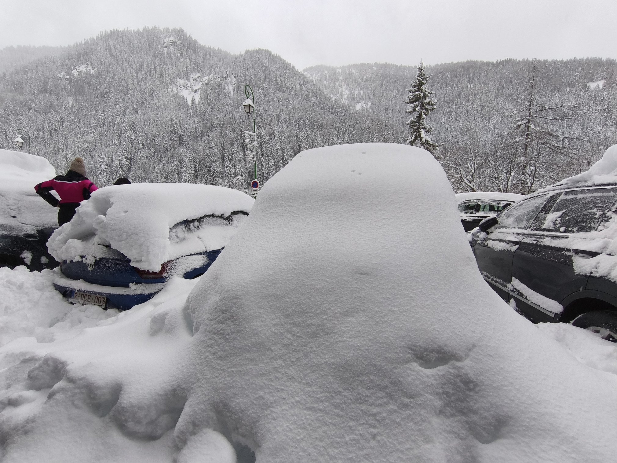 Puis les rafales de vent Nord-Ouest sont devenues tellement fortes l'après-midi (+90 km/h) que la décision a été prise de fermer la télécabine et d'évacuer le Plateau d'Arrondaz vers 15h.