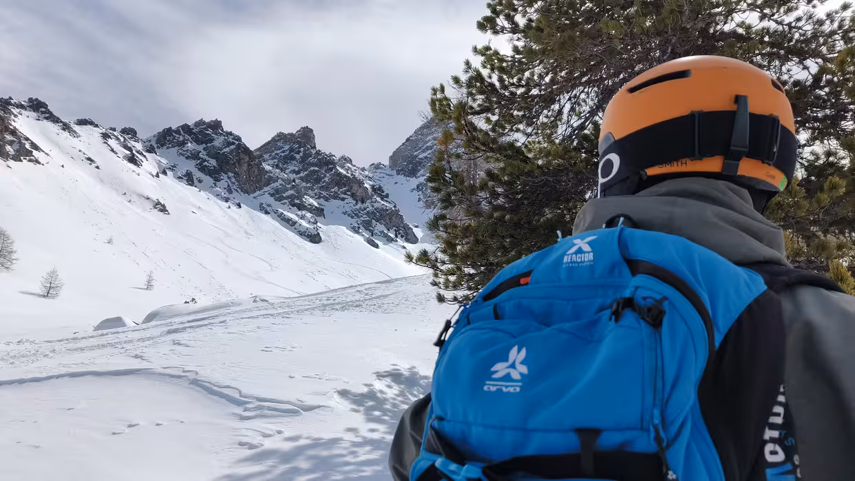 On enchaîne avec un couloir dans la Banane… et là : bien dur, assez glissant à cause du regel. On s’attendait à mieux. On ne s’attarde pas et on bascule de l’autre côté du col d’Arrondaz pour aller voir quelques lignes. Neiges variées dans les couloirs, pas toujours simple à lire, mais le cadre fait oublier le reste. Et surtout, la sortie dans le ruisseau est excellente : encore poudreuse, bien protégée du vent, et ça descend propre assez bas.