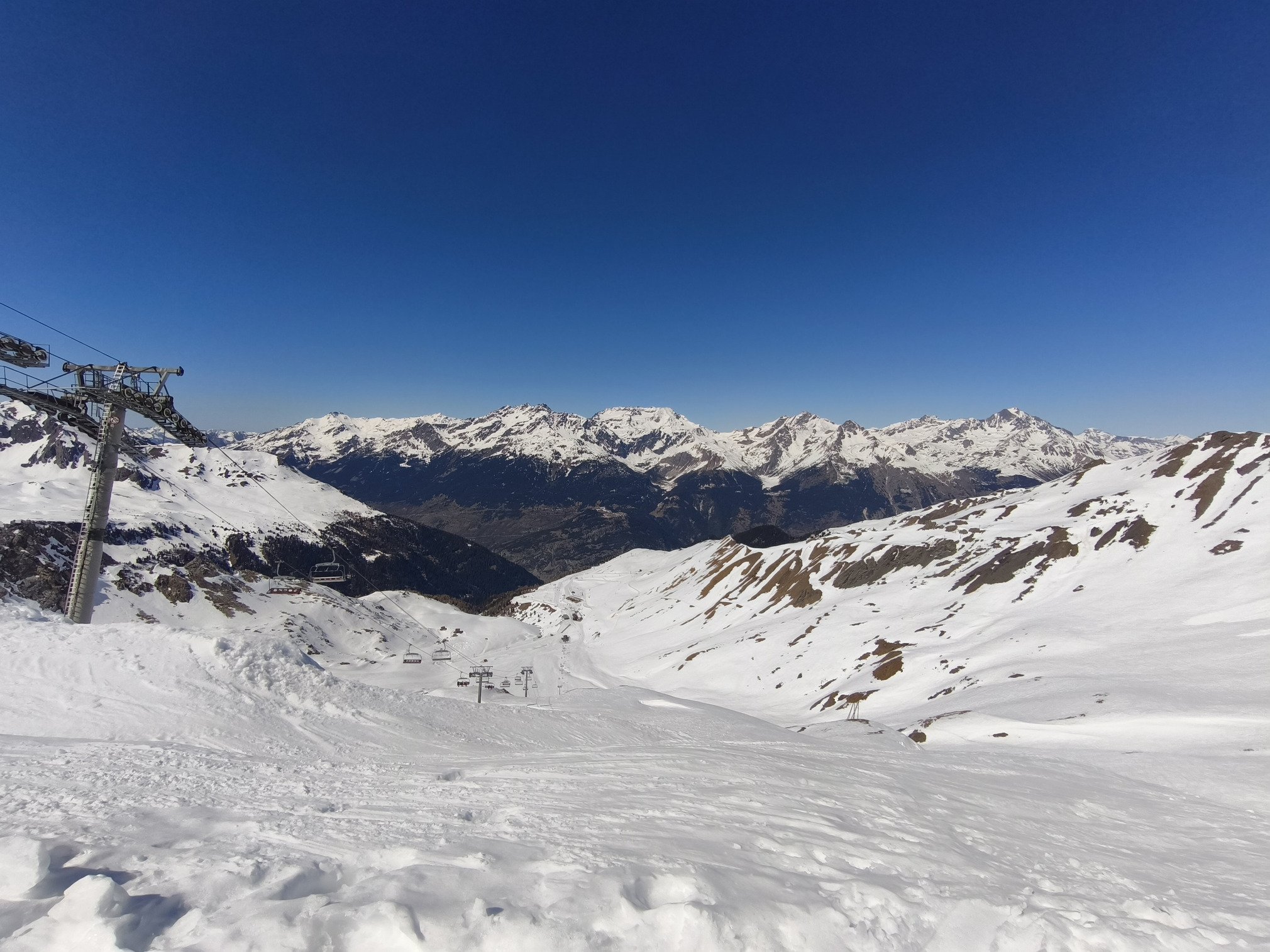 Aujourd'hui c'est tempête de ciel bleu pas un nuage à l'horizon, ni sur Chavière, ni sur l'Italie, et des températures qui s'envolent ! Cet après-midi plus de 15 degrés en bas de la station à 1550 m et 5 degrés vers 2500 m avec un ressenti bien supérieur. L'iso 0 est annoncé vers 3500 m... ça donne chaud !