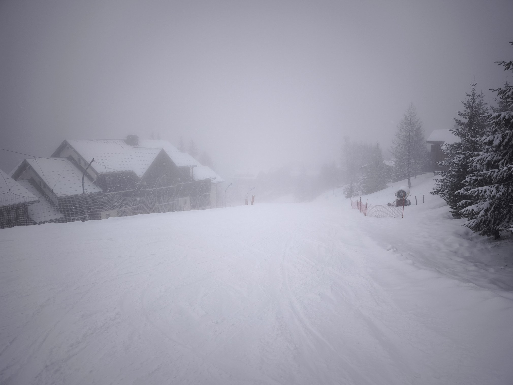 La visibilité est très mauvaise en altitude et le domaine skiable compte de nombreuses pistes fermées sur le haut : le Lac, la Combe, Punta Bagna, la Corniche et le Jeu.