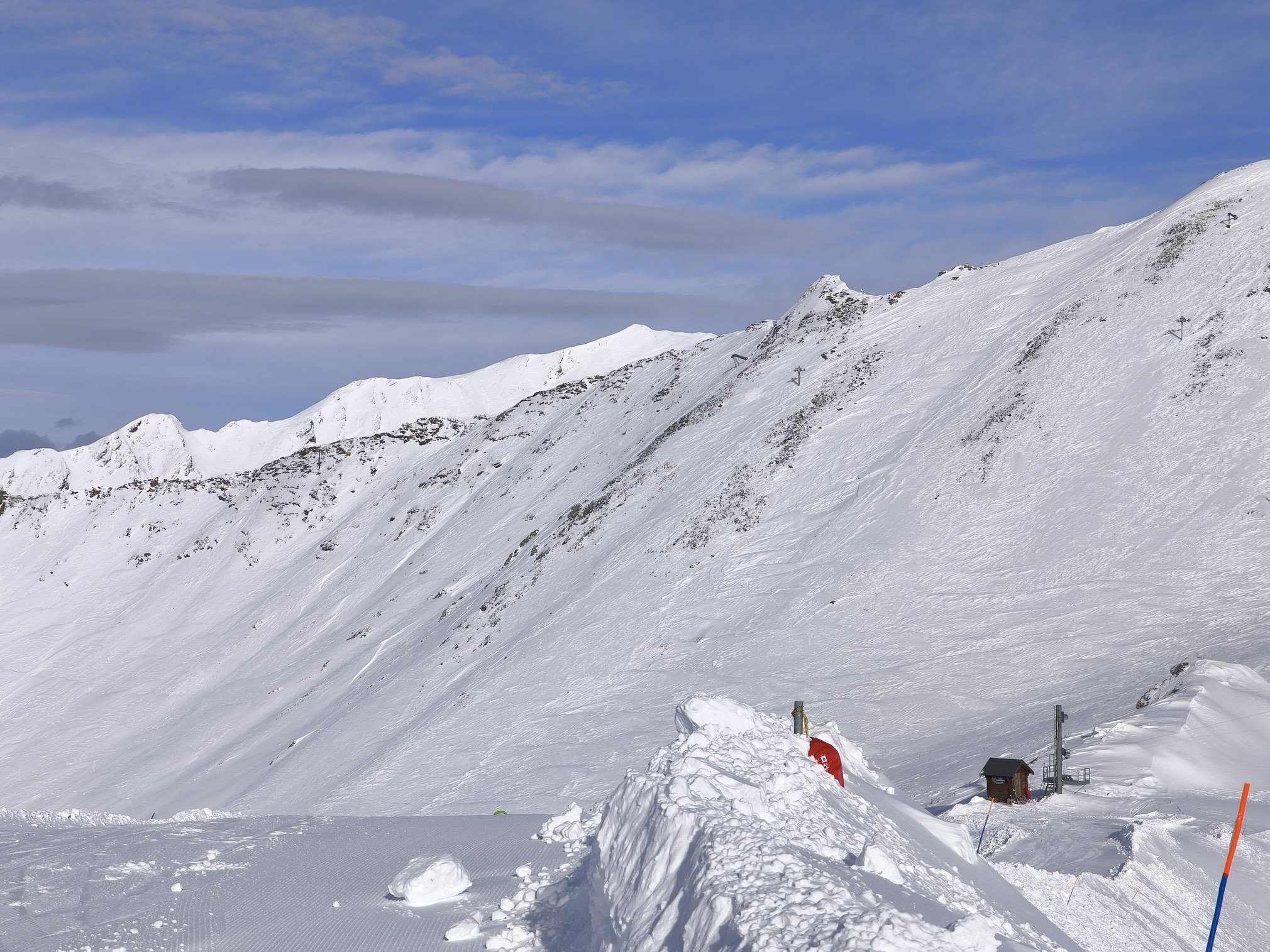 Le travail de sécurisation a été énorme pour pouvoir ouvrir le deuxième tronçon. Et c'est trop bon de retrouver le télésiège de Punta Bagna après deux jours d'arrêt ! D'ailleurs il ne désemplit pas jusqu'à 16h30, heure de la fermeture.
