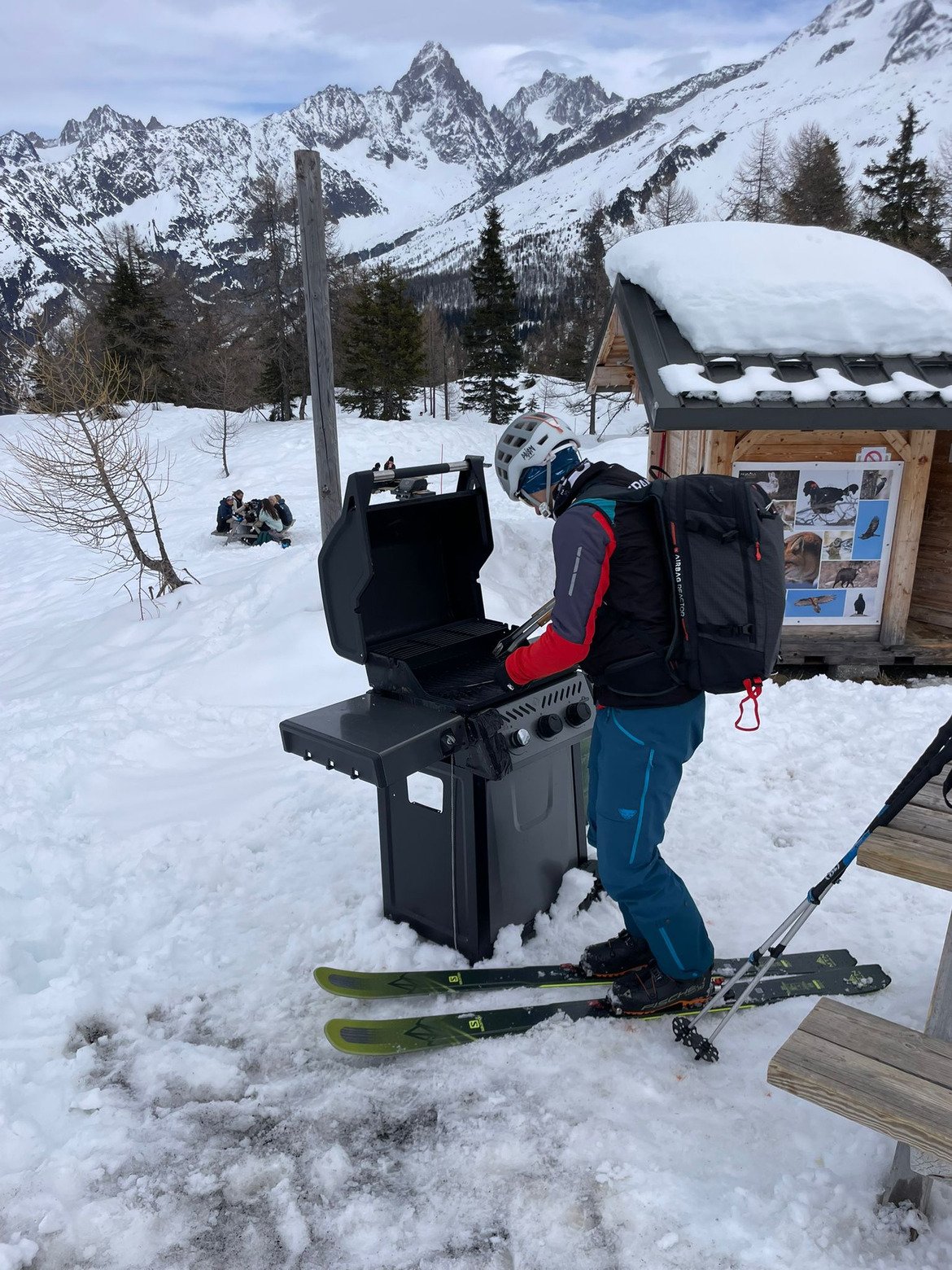 Ca commence du mauvais pied avec un forfait à 75e la journée et des skibus en retard et blindés. Heureusement un fois sorti des pistes on se retrouve presque tous seul et avec une neige pas mauvaise tombée mercredi. Pour le Col du Belvedere plein Sud c'est déjà transfo-croute mais à l'Aiguille Crochue c'est dans la poudreuse ventée 5*. Petit picnic à la zone BBQ de la Flégère, à quand une collab Skipass-Campingaz ? #freemerguez