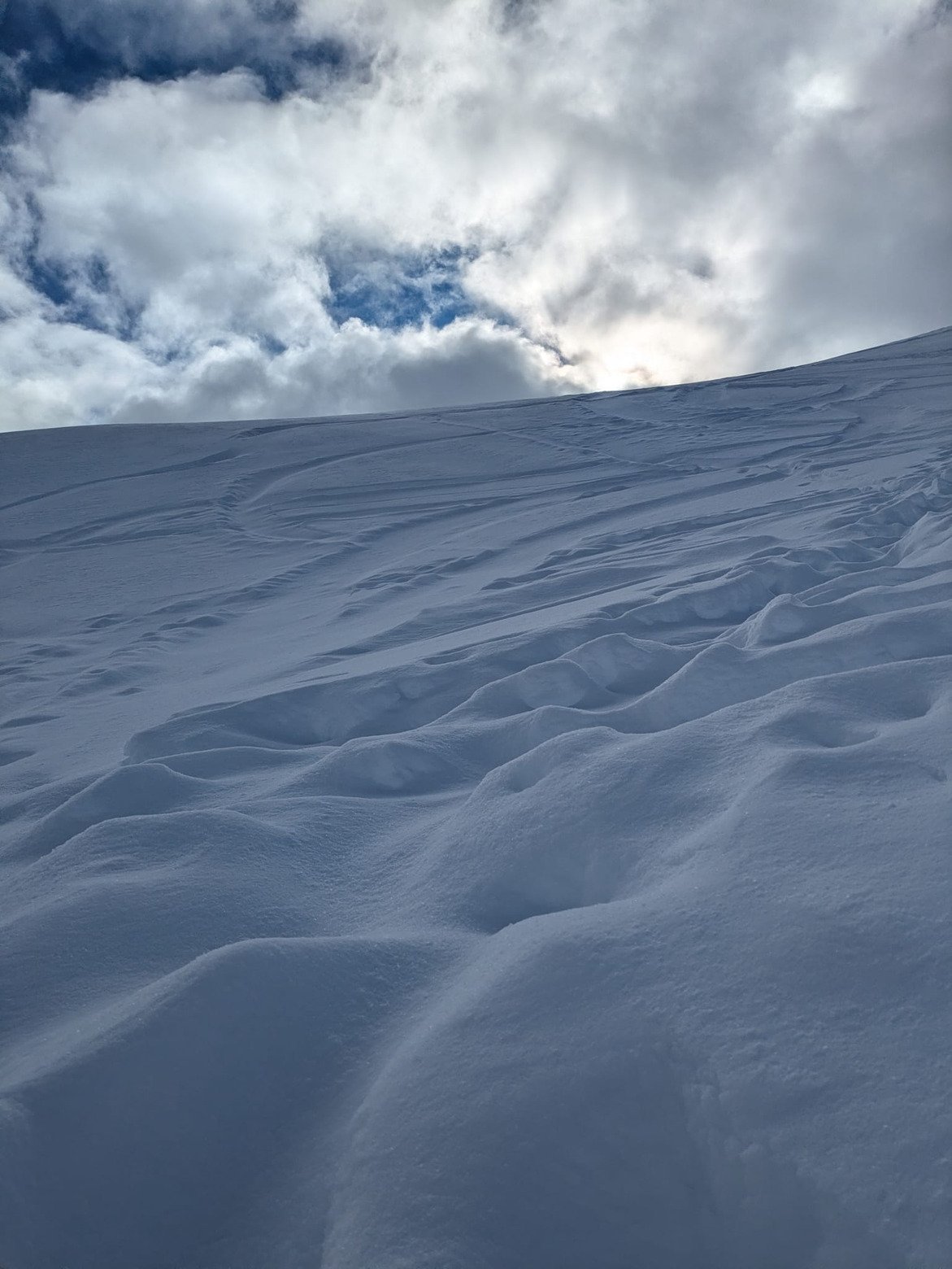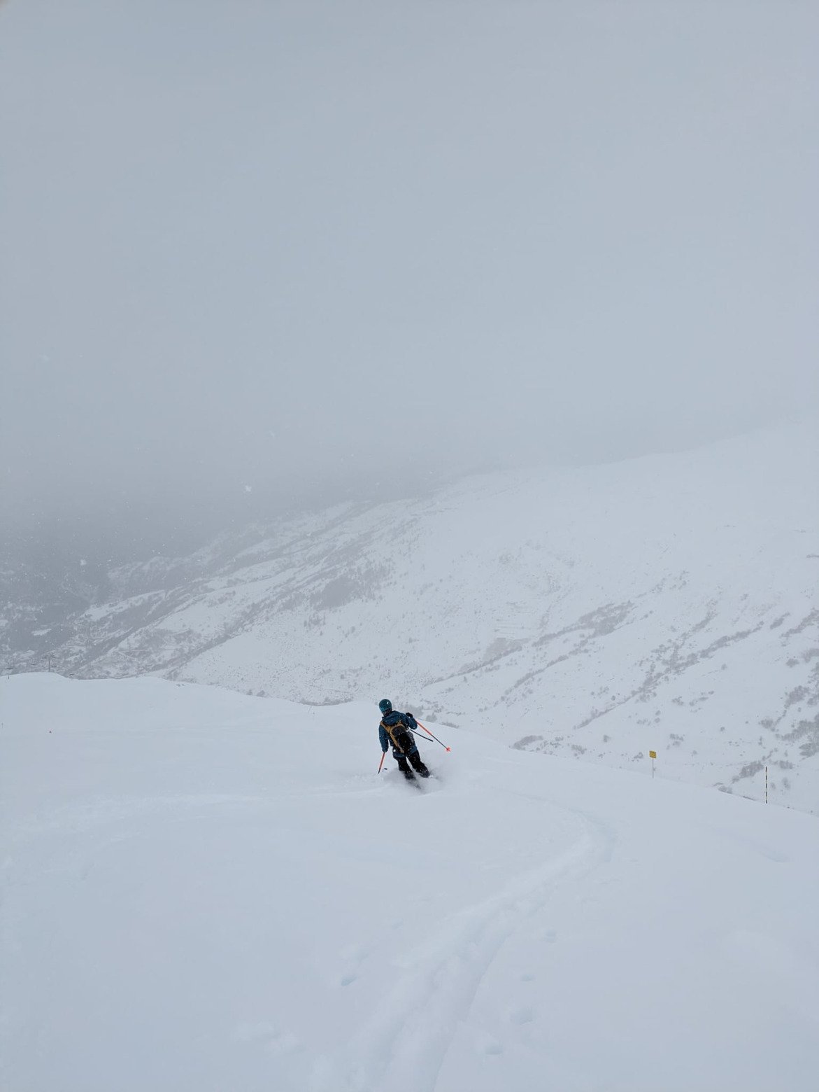 Nous nous sommes payés le luxe de la première trace du jour au dessus de cornafon, sans toutefois pousser jusqu au sommet (un dva resté a la maison, le curseur de risque réglé sur minimum, le brouillard qui nous est tombé dessus en quelques minutes, le bera pas ouf...)