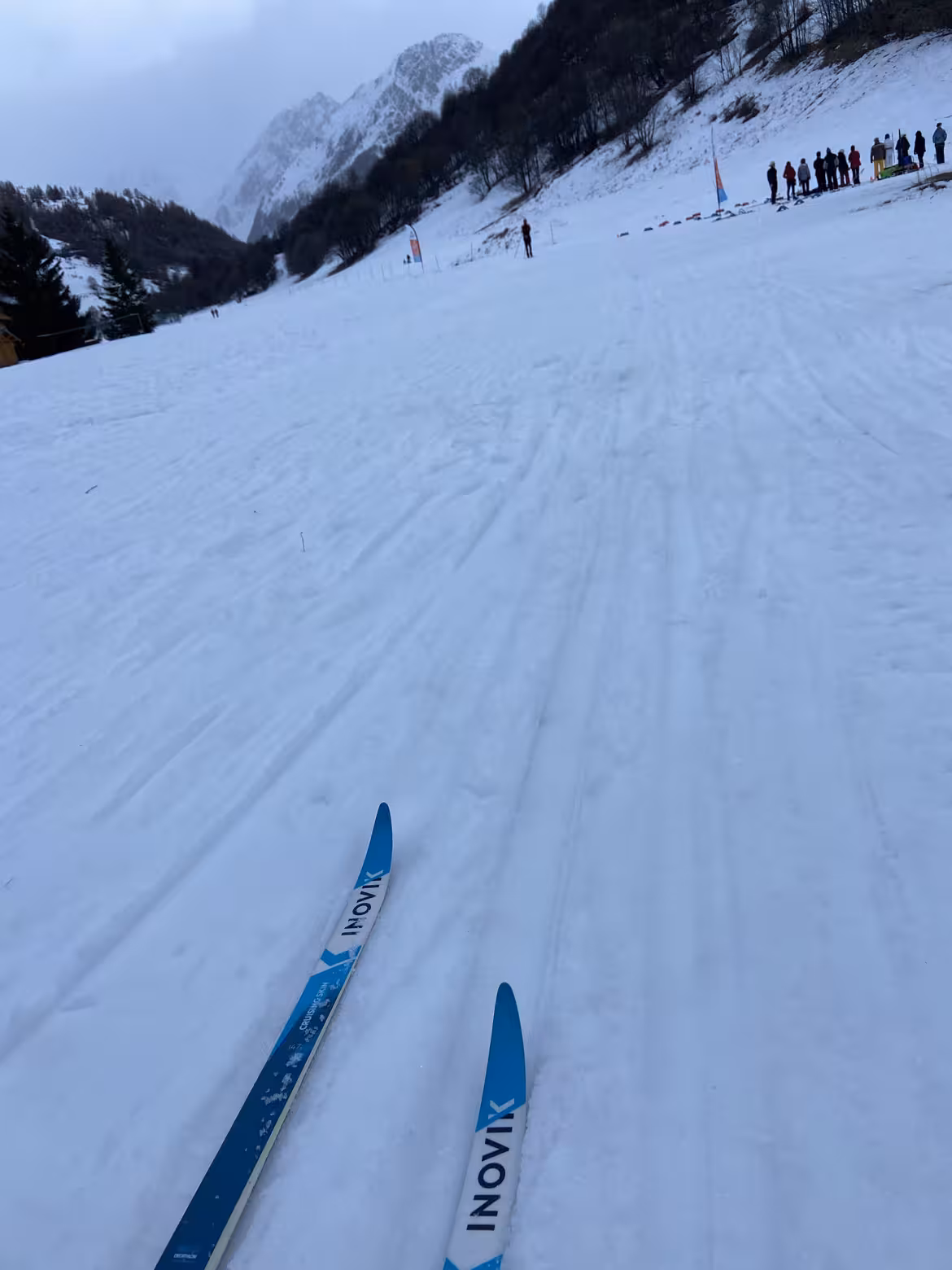 Autour de nous, quelques skieurs de fond, des familles qui se baladent à pied et un groupe en train de se défier au biathlon (sympa à voir, ça donne envie de tester). En levant la tête, on aperçoit au loin le ciel bleu mais il n’est pas arrivé jusqu’à nous malheureusement 🤷🏻♀️