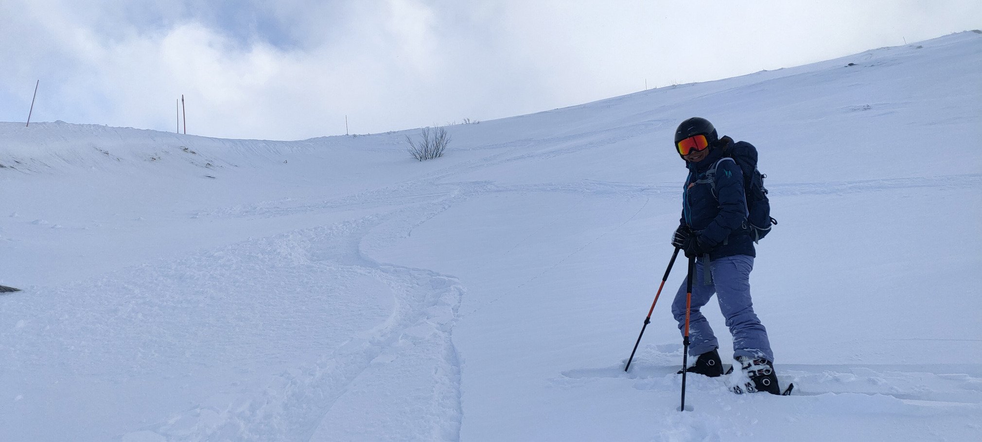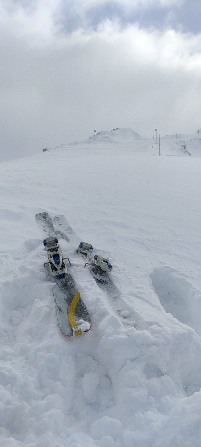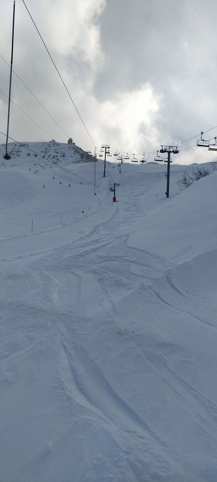 Mais puisque le vent enlève la neige des pistes, c'est bien pour la déposer quelque part, non ? 🤔 En l'occurrence dans certaines pentes et surtout dans les creux, avec des accumulations variant entre 10 et 30 cm. C'est ainsi qu'on a quand même réussi à se faire plaisir dans une poudreuse franchement bonne, notamment sur les bords du TK Château Ripaille ou de la Gerboise (sachant qu'on avait mis les peaux pour remonter les 50 m de dénivelé depuis l'intersection des pistes bleues Primevère et Crocus, le TK Grand Plateau ne tournant pas aujourd'hui).