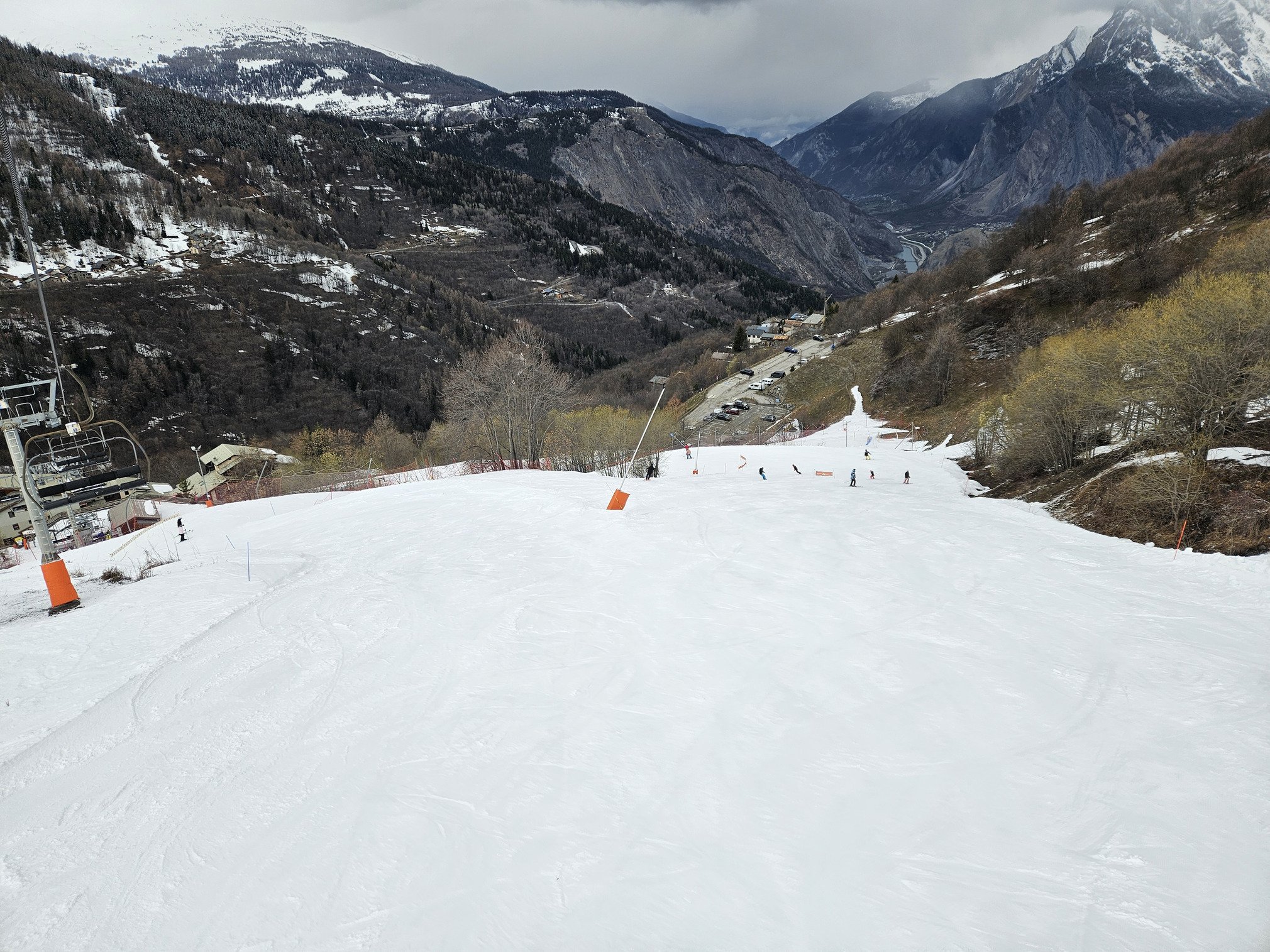 ☃️ Au moins, il ne fait pas trop humide. Tout juste 5cm qui sont tombés dans la nuit pour adoucir les pistes. Et c'est bien agréable, avec une mention spéciale pour la piste Génépi. La visibilité reste bonne aussi.