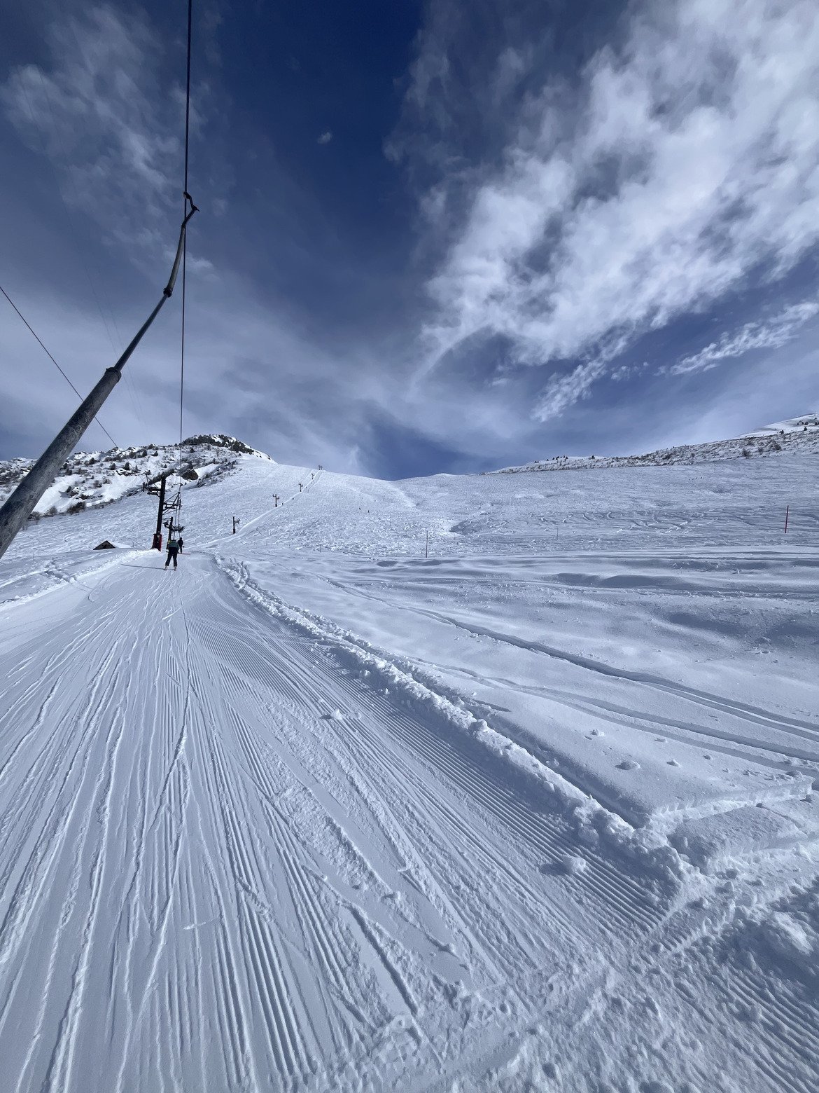 La neige était encore bonne sur les pistes malgré la chaleur. Cependant, les bords de piste ont vraiment pris un coup. L’altitude de la majorité des pistes étant assez basse, il a dû pleuvoir lors des dernières chutes de neige, ce qui rend la neige très lourde à skier. Il faudrait sûrement partir beaucoup plus loin pour chercher les bonnes expositions, ce qui n’était pas mon but aujourd’hui.