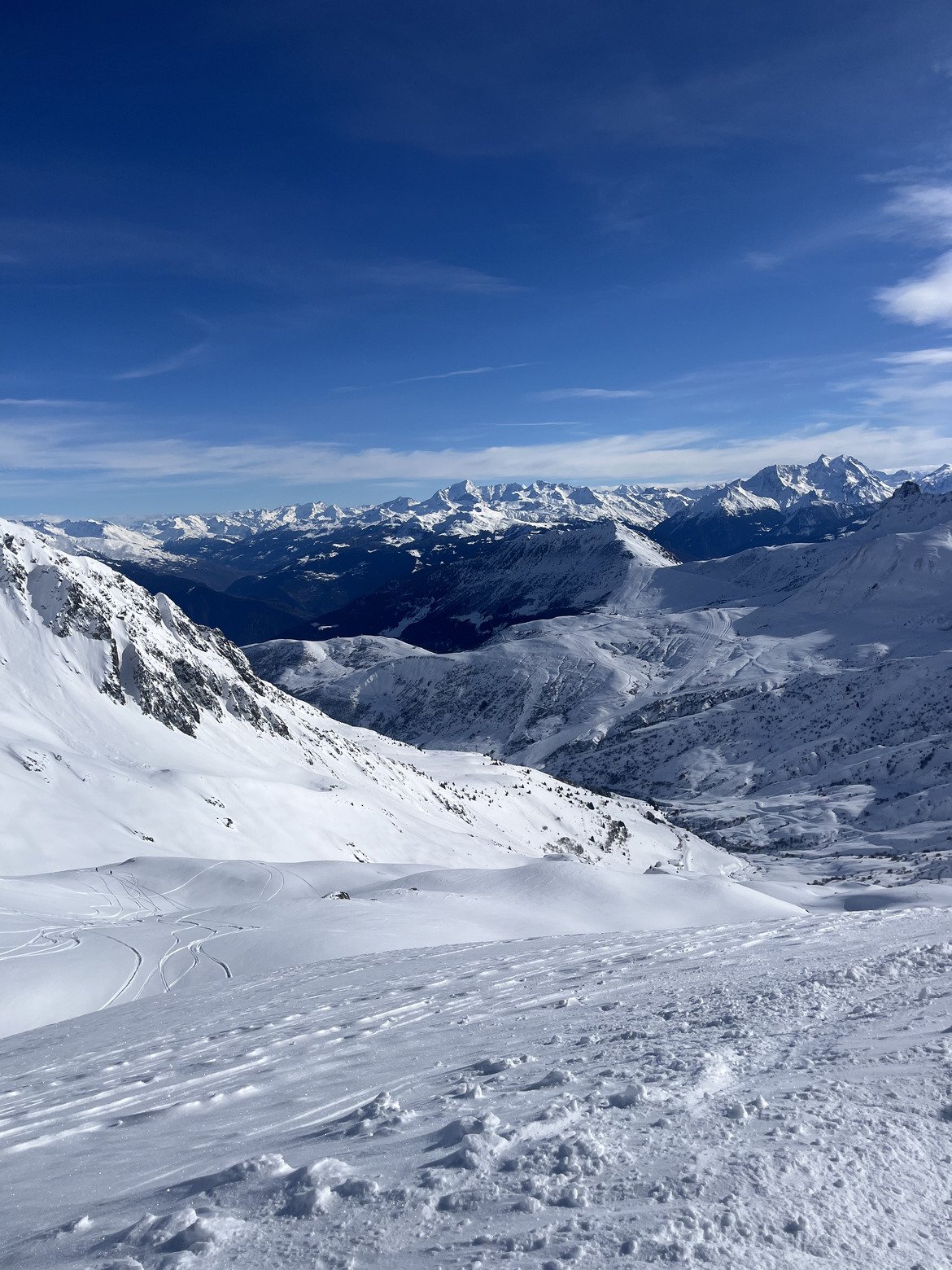Si vous ne connaissez pas le domaine, il est vraiment à découvrir, avec en bonus le forfait du samedi à 29 euros, à profiter sans modération. Pour les amoureux de la nature, les paysages sont variés et toujours magnifiques, que ce soit sur le Mont-Blanc, les Belleville, la Tarentaise, la Maurienne ou les Écrins au loin.