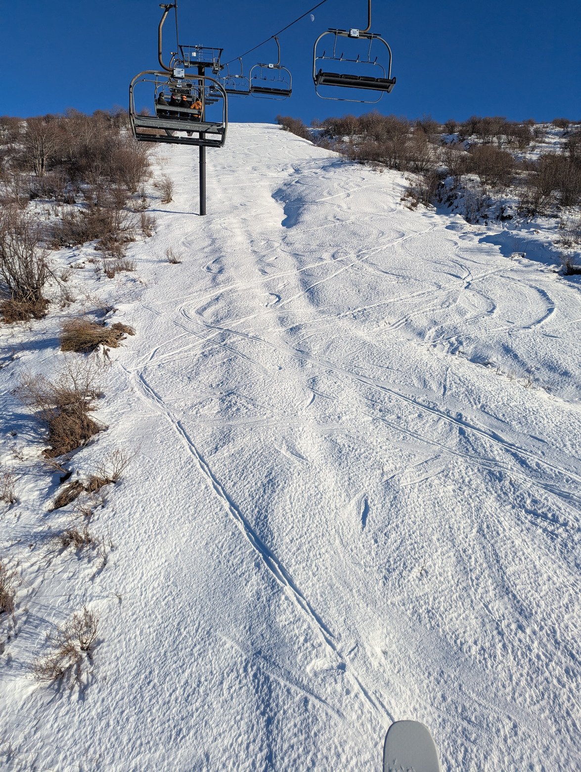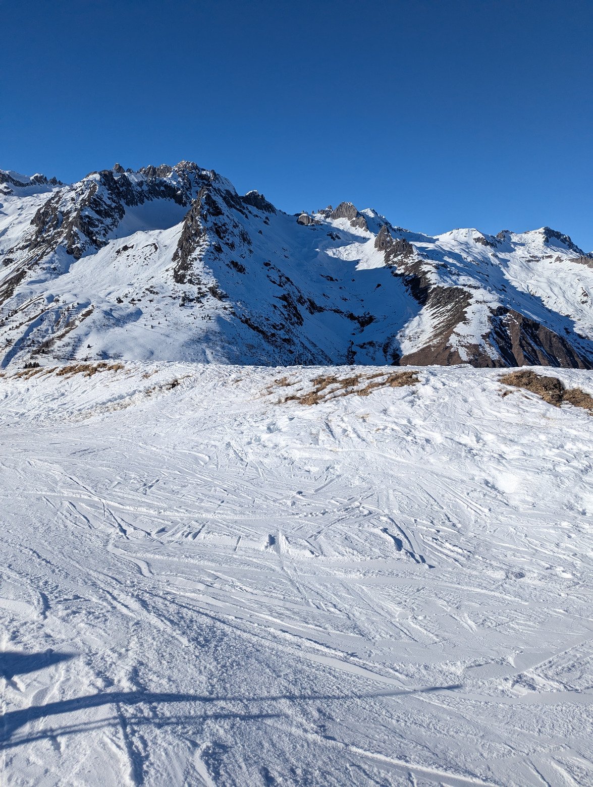 Bien-sûr la neige est béton mais l'enneigement reste correct même si quelques cailloux commencent à apparaître ici ou là.