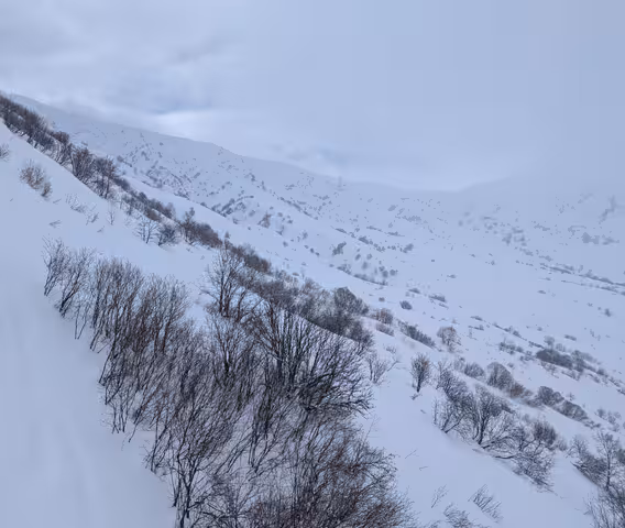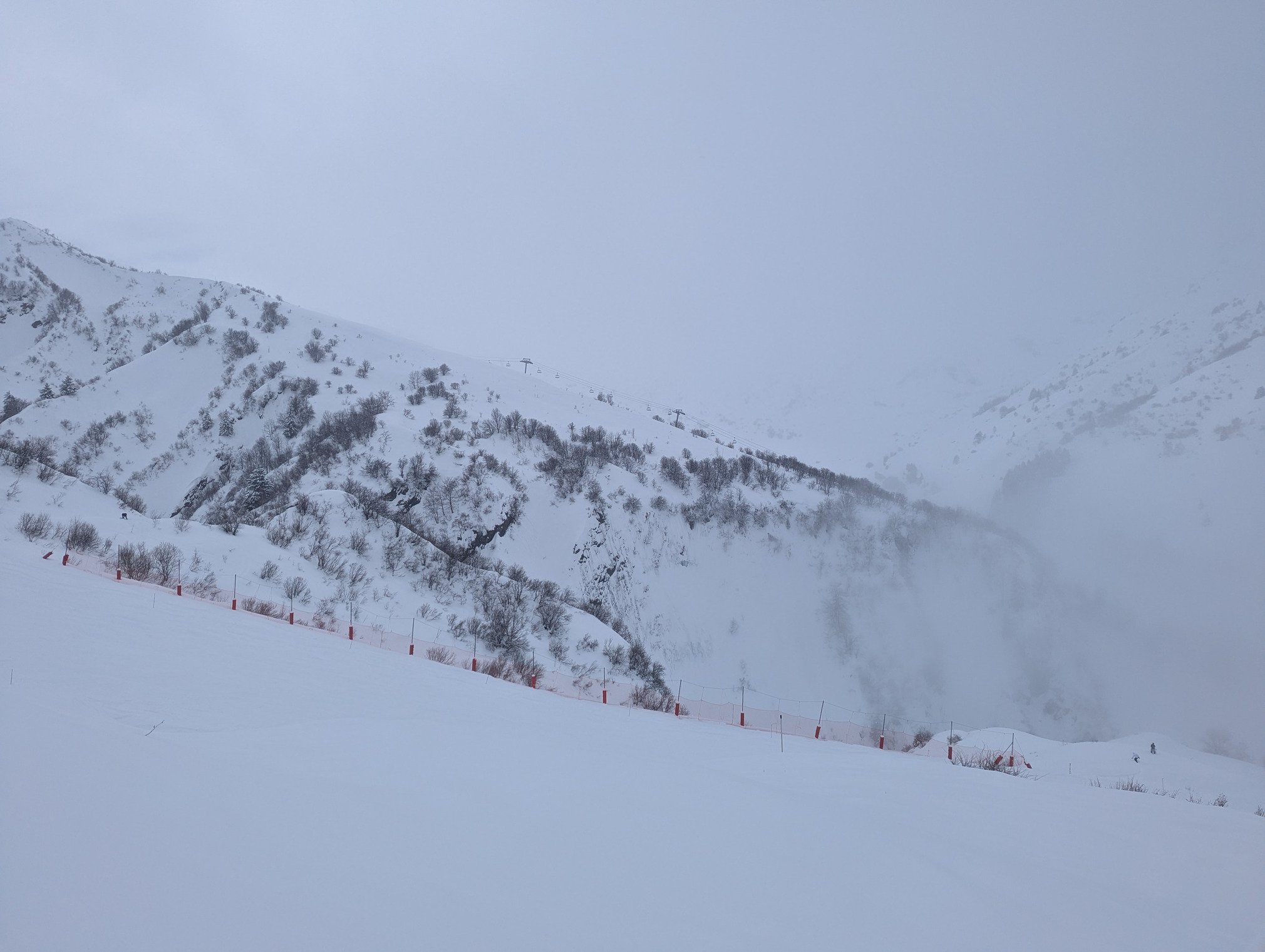 Globalement le ski est correct même si la neige est humide (et un poil lourde) jusqu'en haut et que le manteau irrégulier dissimule pas mal de pièges !
