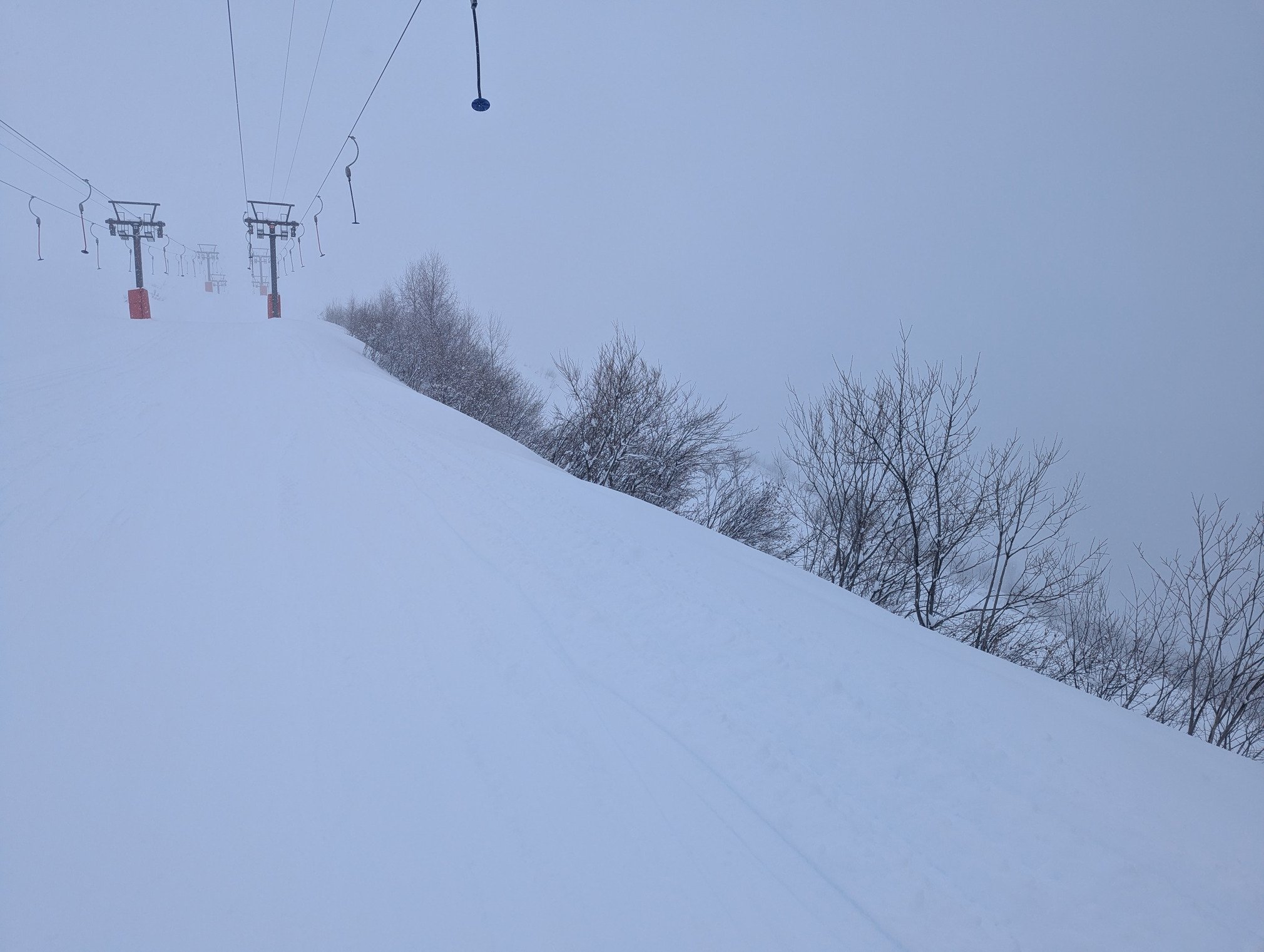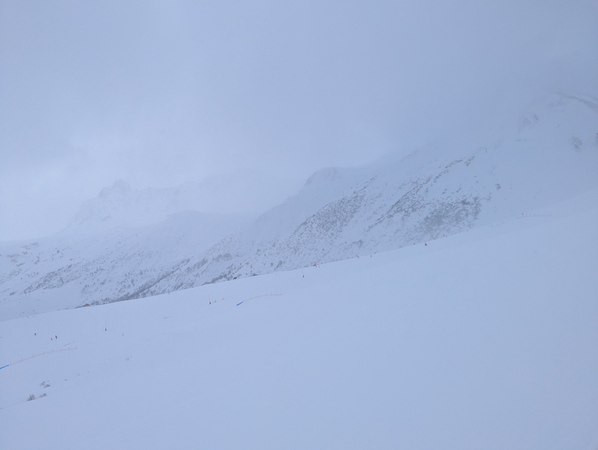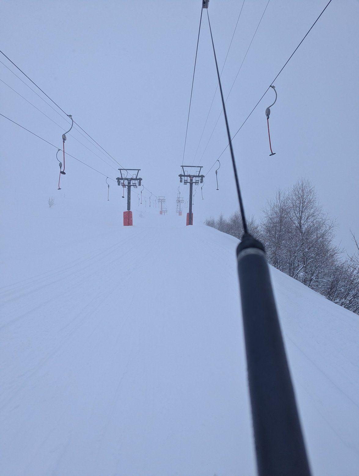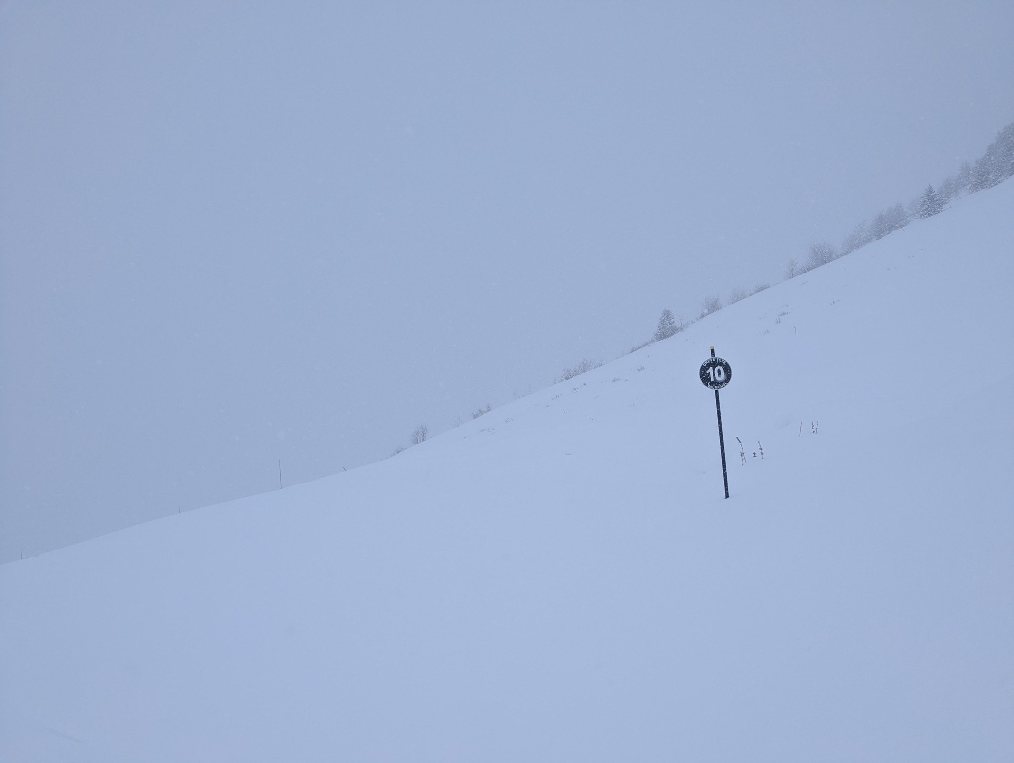 En tout cas pour l'instant pas grand monde pour profiter de la trentaine de centimètres tombés. En même temps la météo n'incite pas tellement a sortir. La neige continue de tomber et ça souffle fort.