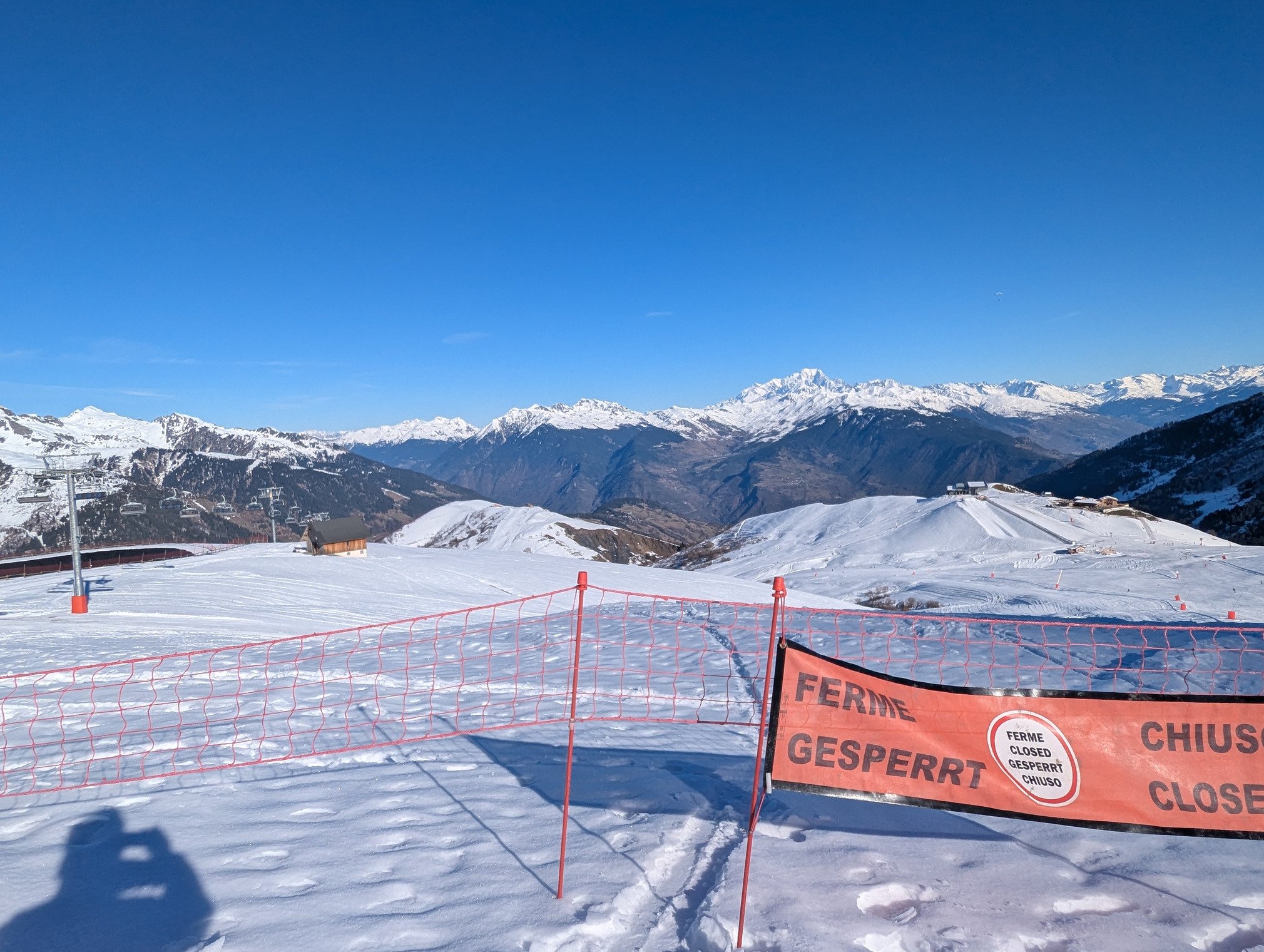 La neige est relativement dure sur l'ensemble du domaine mais c'est agréable à skier . Globalement l'enneigement est correct et les cailloux sont bien cachés. L'état de la neige en bord de piste ne donne pas vraiment envie d'aller voir plus loin. C'est bien croûté...