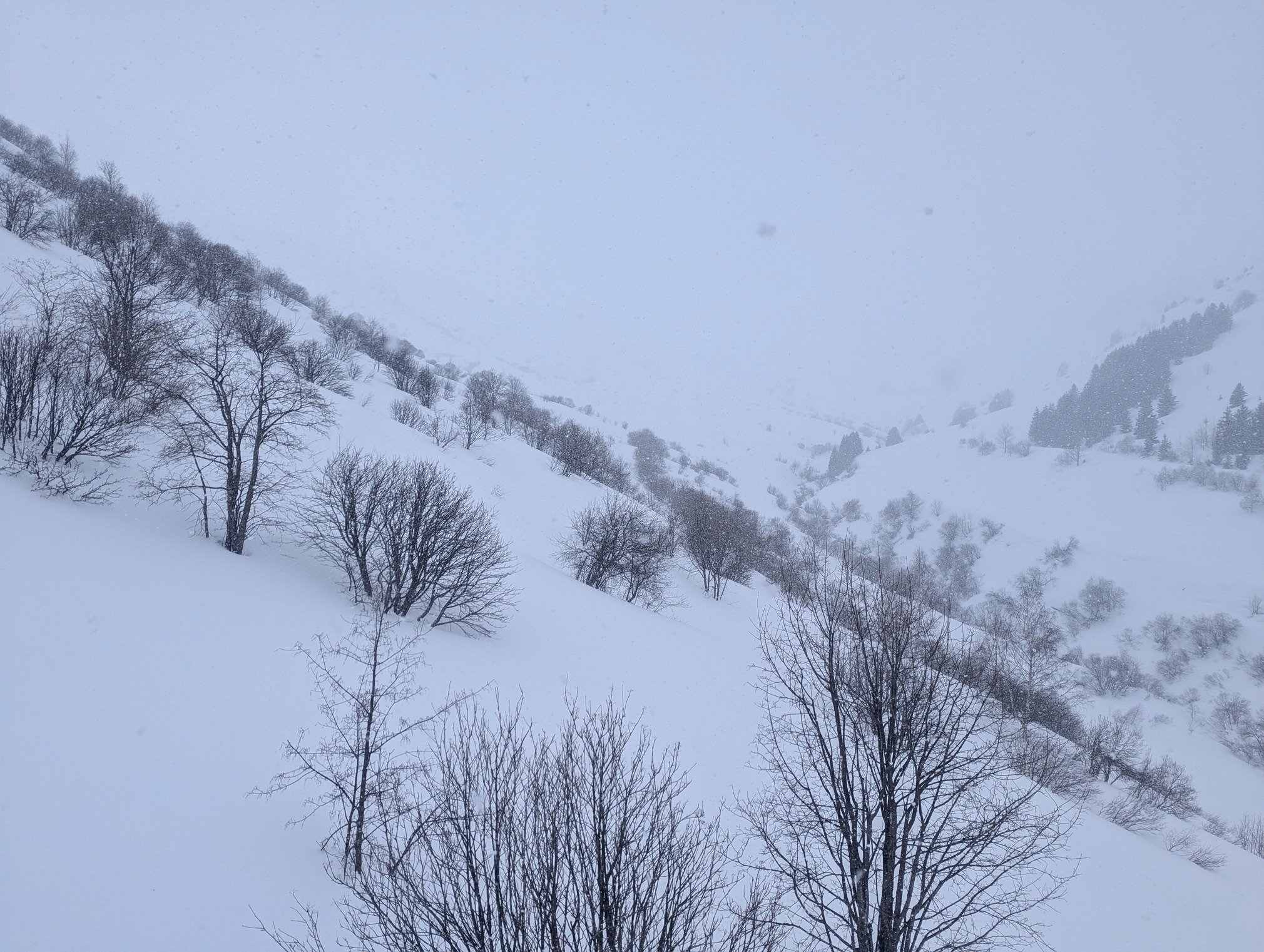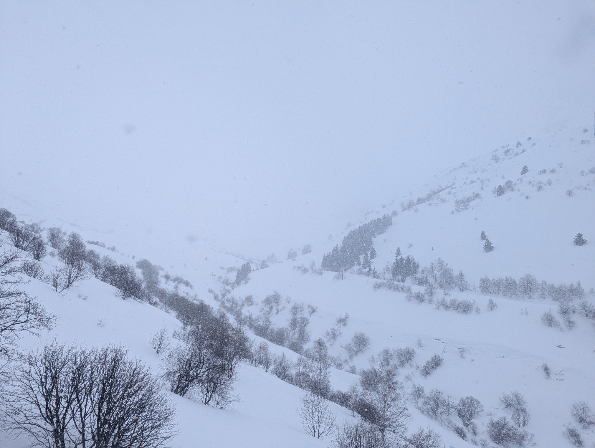 La météo annonçait grand beau : raté il neigeait encore à 14h ! Les sommets ont eu bien du mal à se dégager.