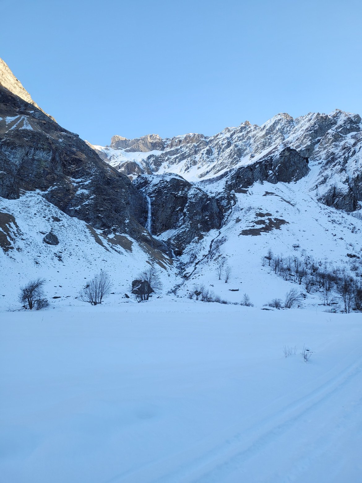 Après le col des Roches noires, c'est bien meilleur. La poudre est pas mauvaise mais piegeuse, en atteste un bon coup de requin jusqu'au noyau du ski.