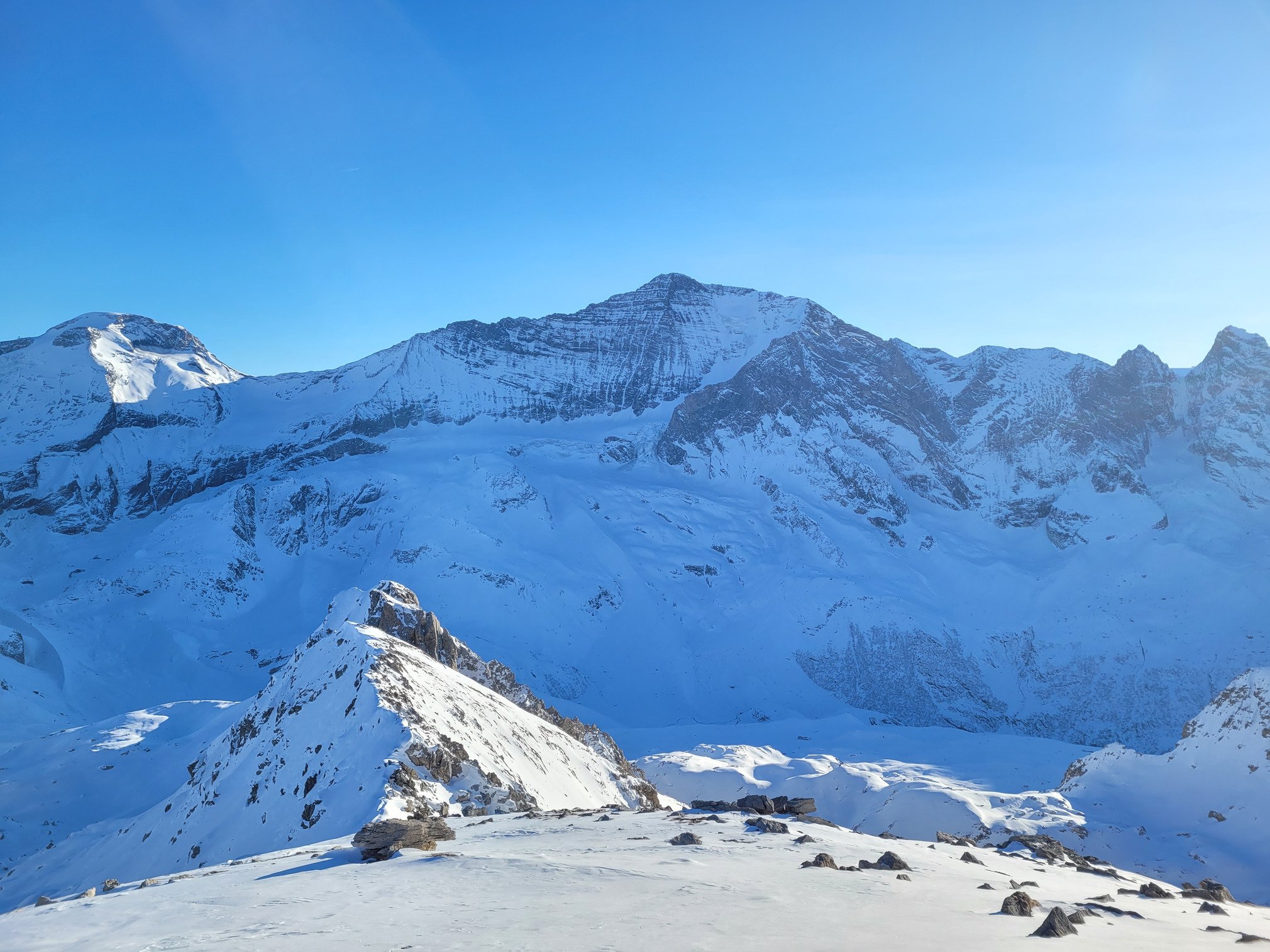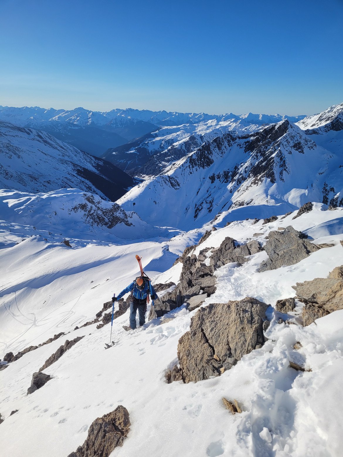 Une magnifique journée en montagne, un beau sommet validé, 600m de bonne descente contre un trou dans les ski neufs et 1000m de descente à oublier. C'est le deal.
