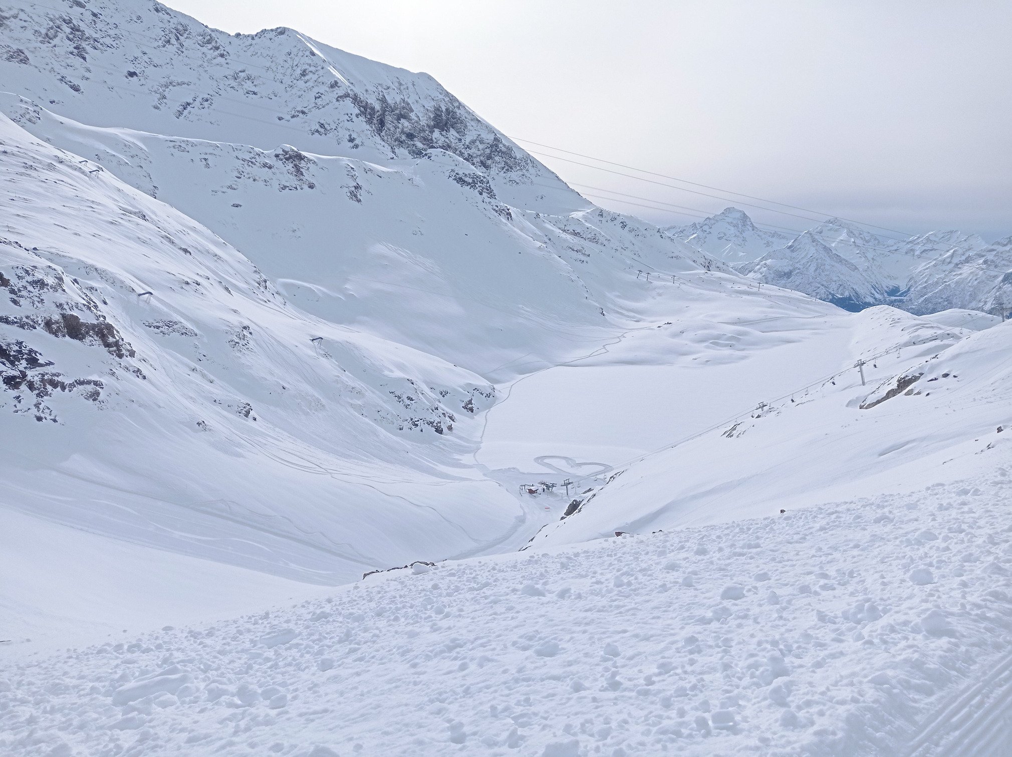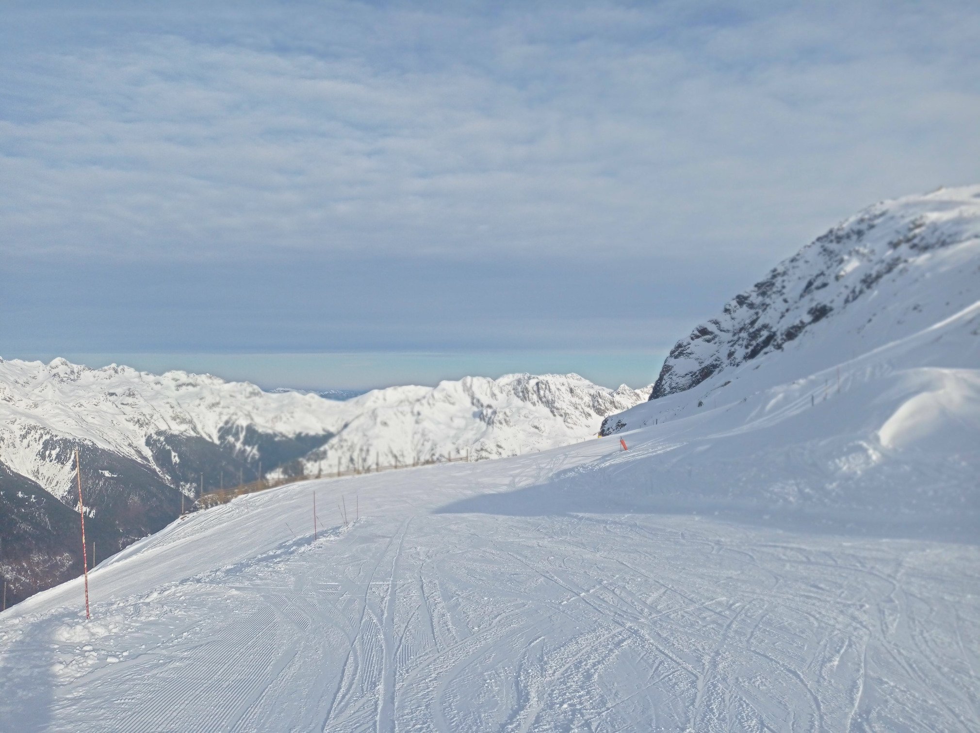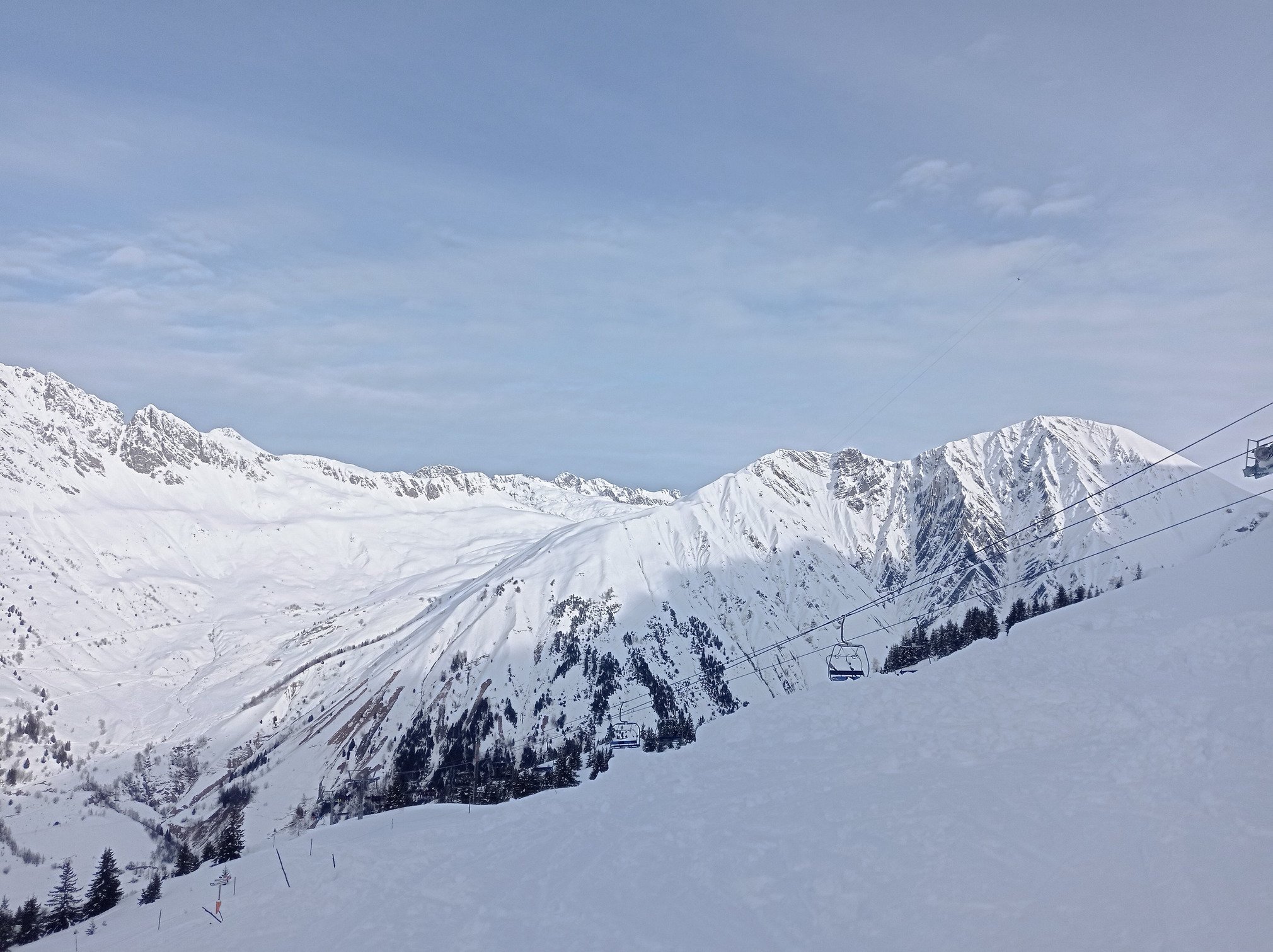 Le retour vers l'Alpe d'Huez se fait sans attente aux remontées et avec de tout aussi belles conditions sur les pistes.