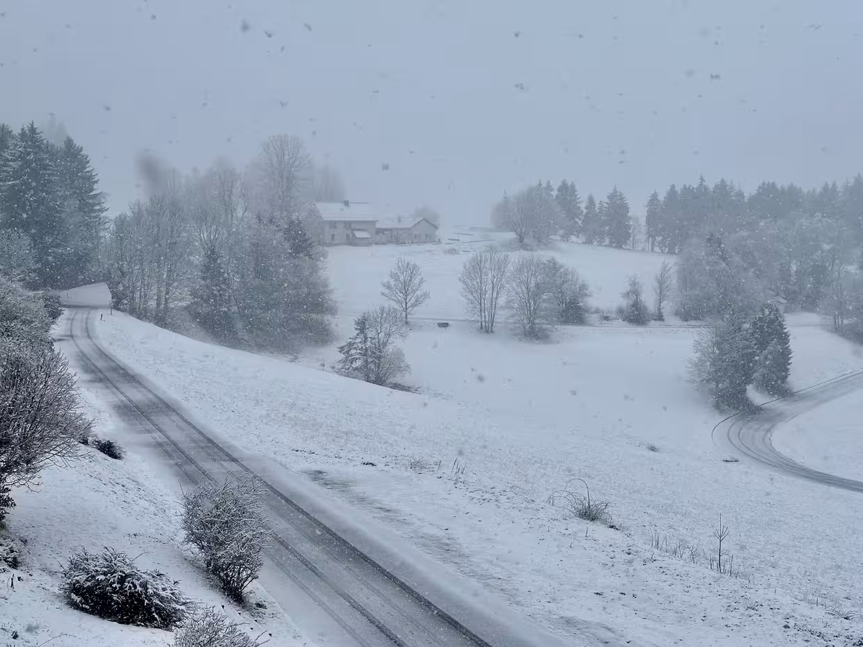 C’est la surprise de ce dimanche matin : plus de 3 degrés à 8h et de la pluie puis une bascule rapide à la neige sous des intensités surprenantes alors que tous les modèles prévoient encore que le gros de la neige soit pour l’après midi…